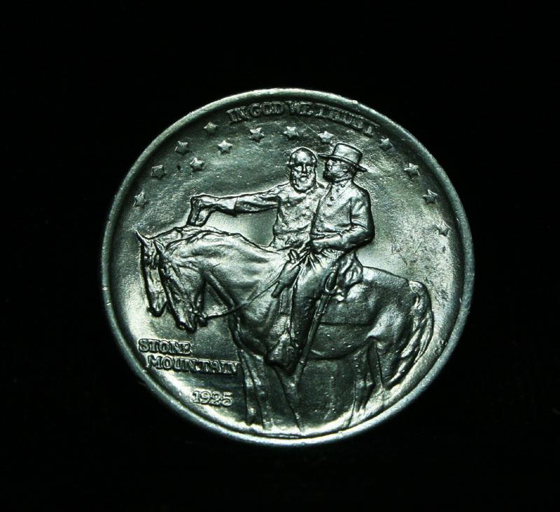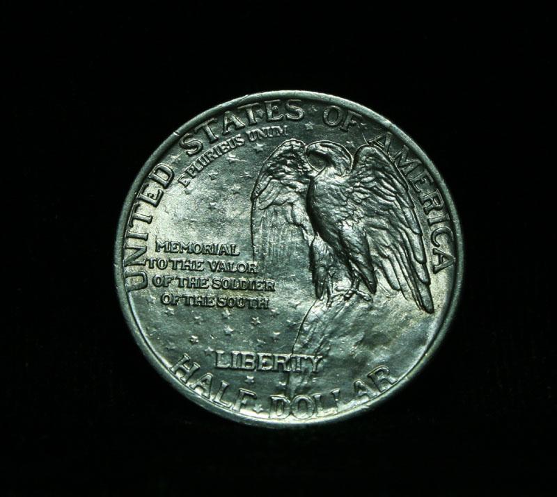 A beautiful white example, beautiful Luster. One of the most Beloved Commemoratives. It celebrates the construction of a monument carved into The Stone Mountain outside of Atlanta, except the Monument was not completed till 1970 some 45 years after is minting. The original designer of the monument was discharged after a falling out and went on to create Mount Rushmore. When Examining a Stone Mountain Commemorative examine General Lee’s elbow and the eagle’s breast for the first signs of wear. Coin World's Coin Values lists ms65 at $250 and The Wholesale Greysheet lists ms65 at $250. Estimated Value $275