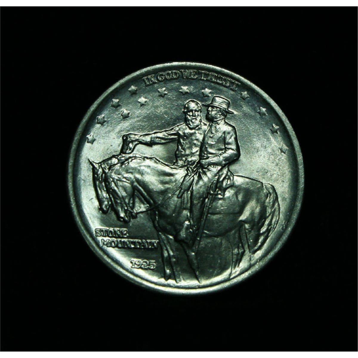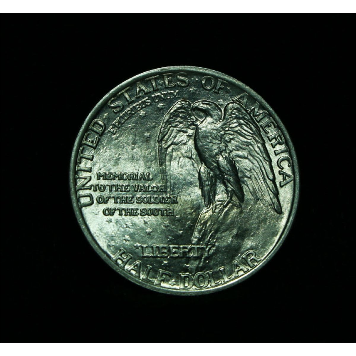 A beautiful white example, beautiful Luster. One of the most Beloved Commemoratives. It celebrates the construction of a monument carved into The Stone Mountain outside of Atlanta, except the Monument was not completed till 1970 some 45 years after is minting. The original designer of the monument was discharged after a falling out and went on to create Mount Rushmore. When Examining a Stone Mountain Commemorative examine General Lee’s elbow and the eagle’s breast for the first signs of wear. Coin World's Coin Values lists ms65 at $250 and The Wholesale Greysheet lists ms65 at $250. Estimated Value $275