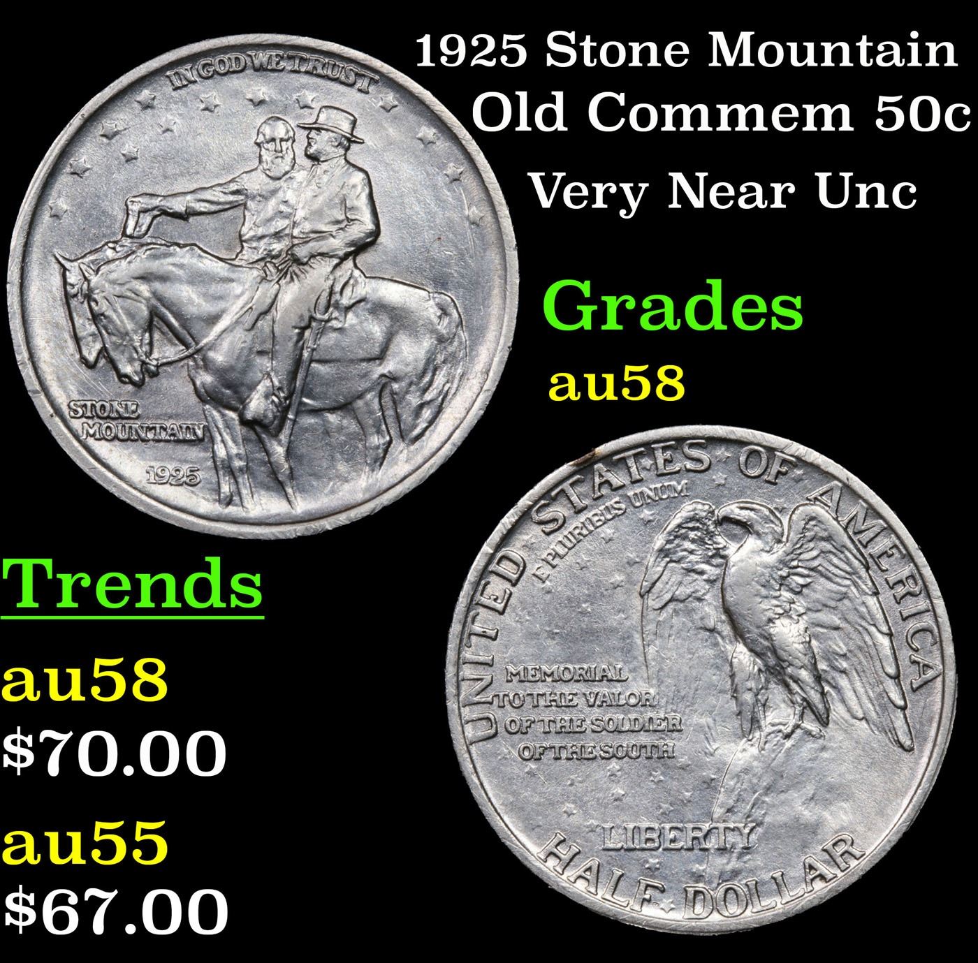 1925 Stone Mountain Old Commem Half Dollar 50c Grades Choice AU/BU Slider. One of the most Beloved Commemoratives. A perennial favorite and one of the most popular commemoratives - the Stone Mountain never dissapoints in its desirability. It celebrates the construction of a monument carved into The Stone Mountain outside of Atlanta, except the Monument was not completed till 1970 some 45 years after is minting. The original designer of the monument was discharged after a falling out and went on to create Mount Rushmore. When Examining a Stone Mountain Commemorative examine General Lee’s elbow and the eagle’s breast for the first signs of wear.