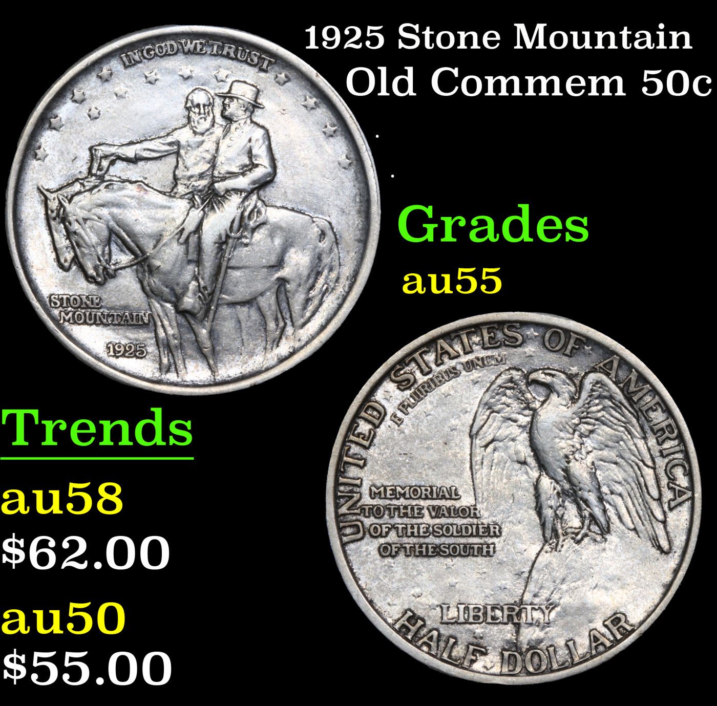1925 Stone Mountain Old Commem Half Dollar 50c Grades Choice AU. One of the most Beloved Commemoratives. A perennial favorite and one of the most popular commemoratives - the Stone Mountain never dissapoints in its desirability. It celebrates the construction of a monument carved into The Stone Mountain outside of Atlanta, except the Monument was not completed till 1970 some 45 years after is minting. The original designer of the monument was discharged after a falling out and went on to create Mount Rushmore. When Examining a Stone Mountain Commemorative examine General Lee’s elbow and the eagle’s breast for the first signs of wear.