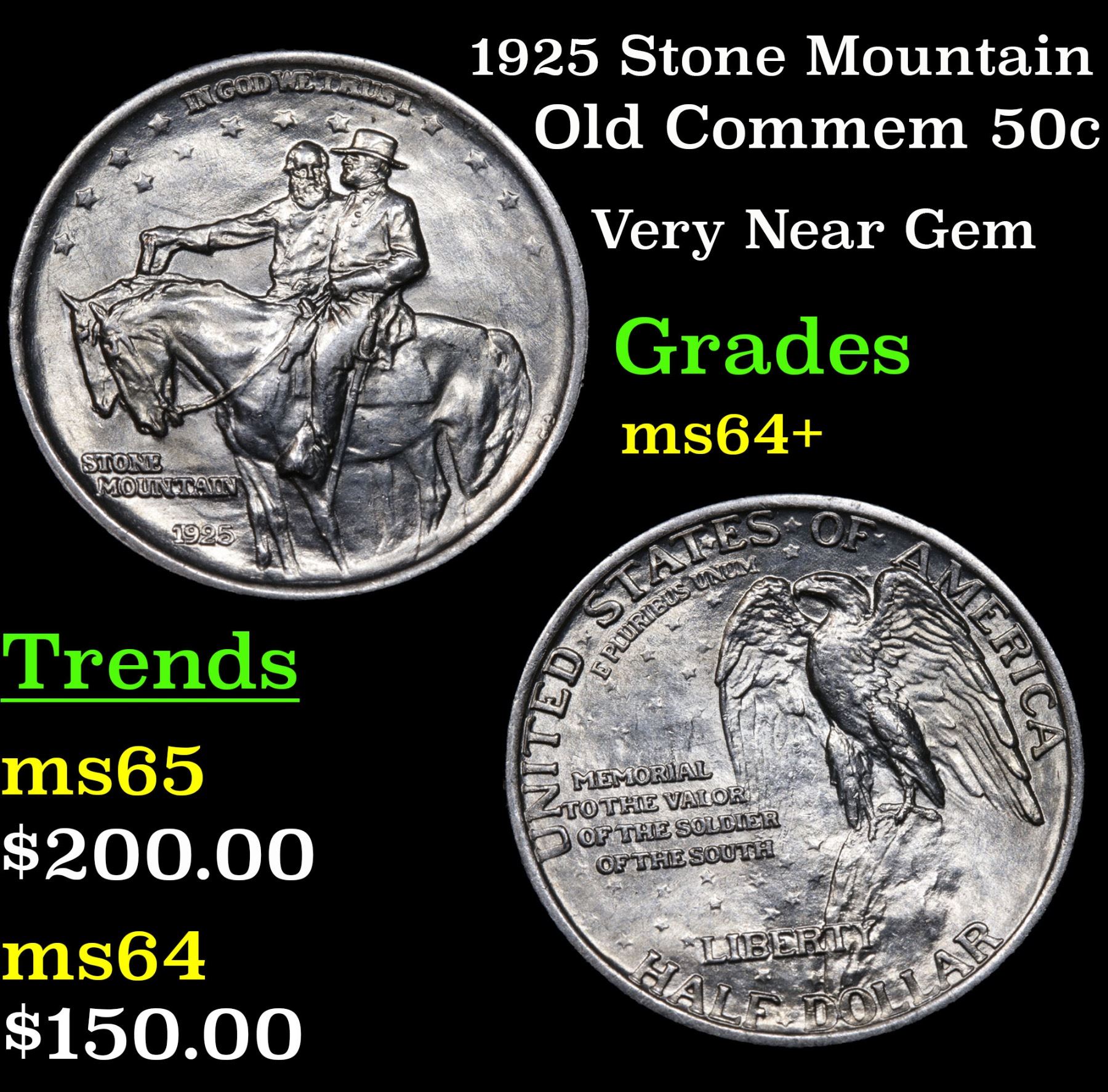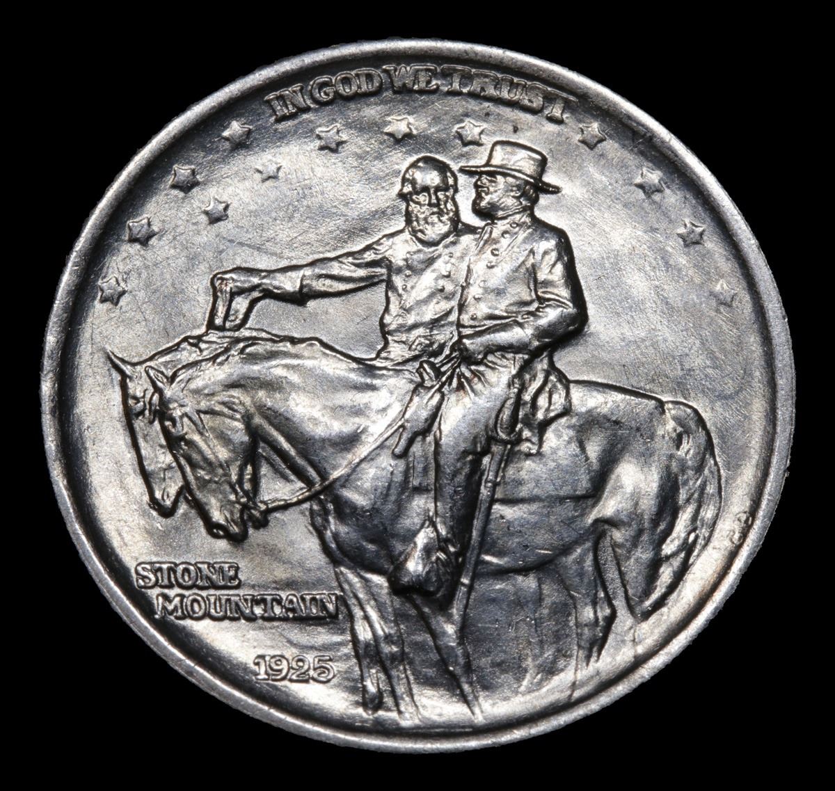 1925 Stone Mountain . Very Near Gem Old Commem Half Dollar 50c Grades Choice+ Unc. One of the most Beloved Commemoratives. A perennial favorite and one of the most popular commemoratives - the Stone Mountain never dissapoints in its desirability. It celebrates the construction of a monument carved into The Stone Mountain outside of Atlanta, except the Monument was not completed till 1970 some 45 years after is minting. The original designer of the monument was discharged after a falling out and went on to create Mount Rushmore. When Examining a Stone Mountain Commemorative examine General Lee’s elbow and the eagle’s breast for the first signs of wear.