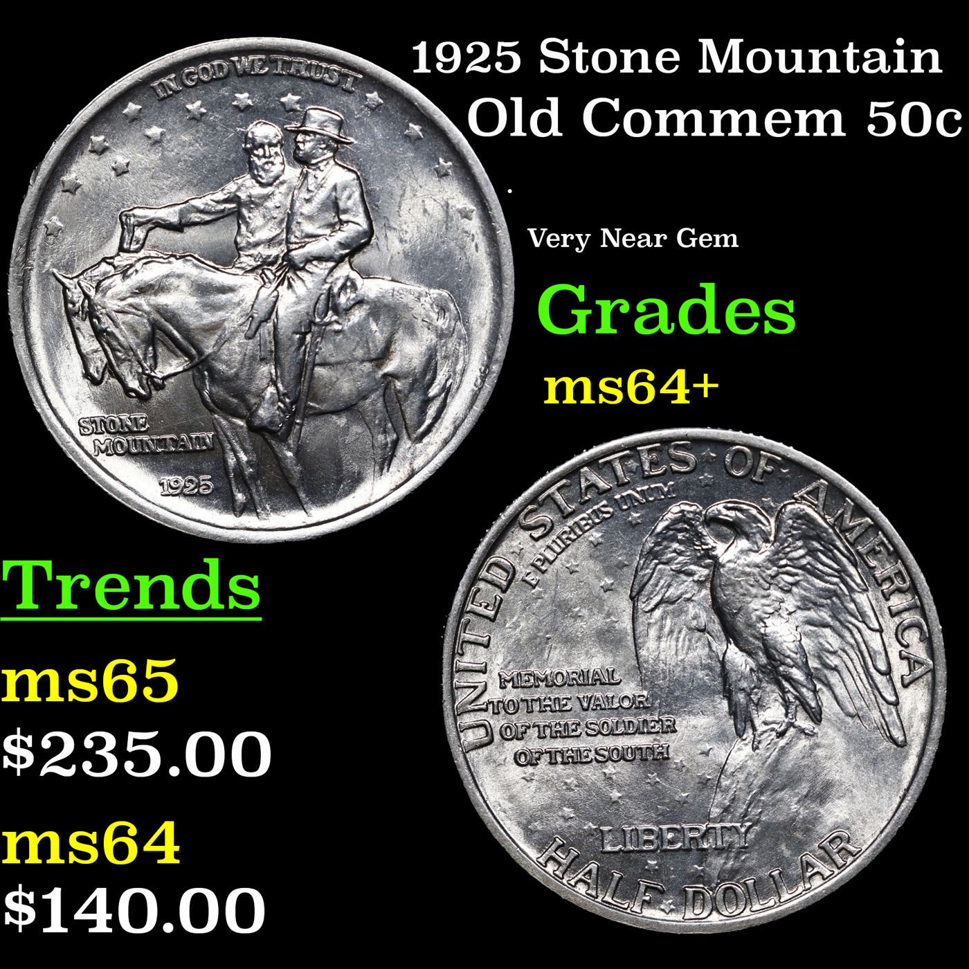 1925 Stone Mountain Old Commem Half Dollar 50c Grades Choice+ Unc. One of the most Beloved Commemoratives. A perennial favorite and one of the most popular commemoratives - the Stone Mountain never dissapoints in its desirability. It celebrates the construction of a monument carved into The Stone Mountain outside of Atlanta, except the Monument was not completed till 1970 some 45 years after is minting. The original designer of the monument was discharged after a falling out and went on to create Mount Rushmore. When Examining a Stone Mountain Commemorative examine General Lee’s elbow and the eagle’s breast for the first signs of wear.