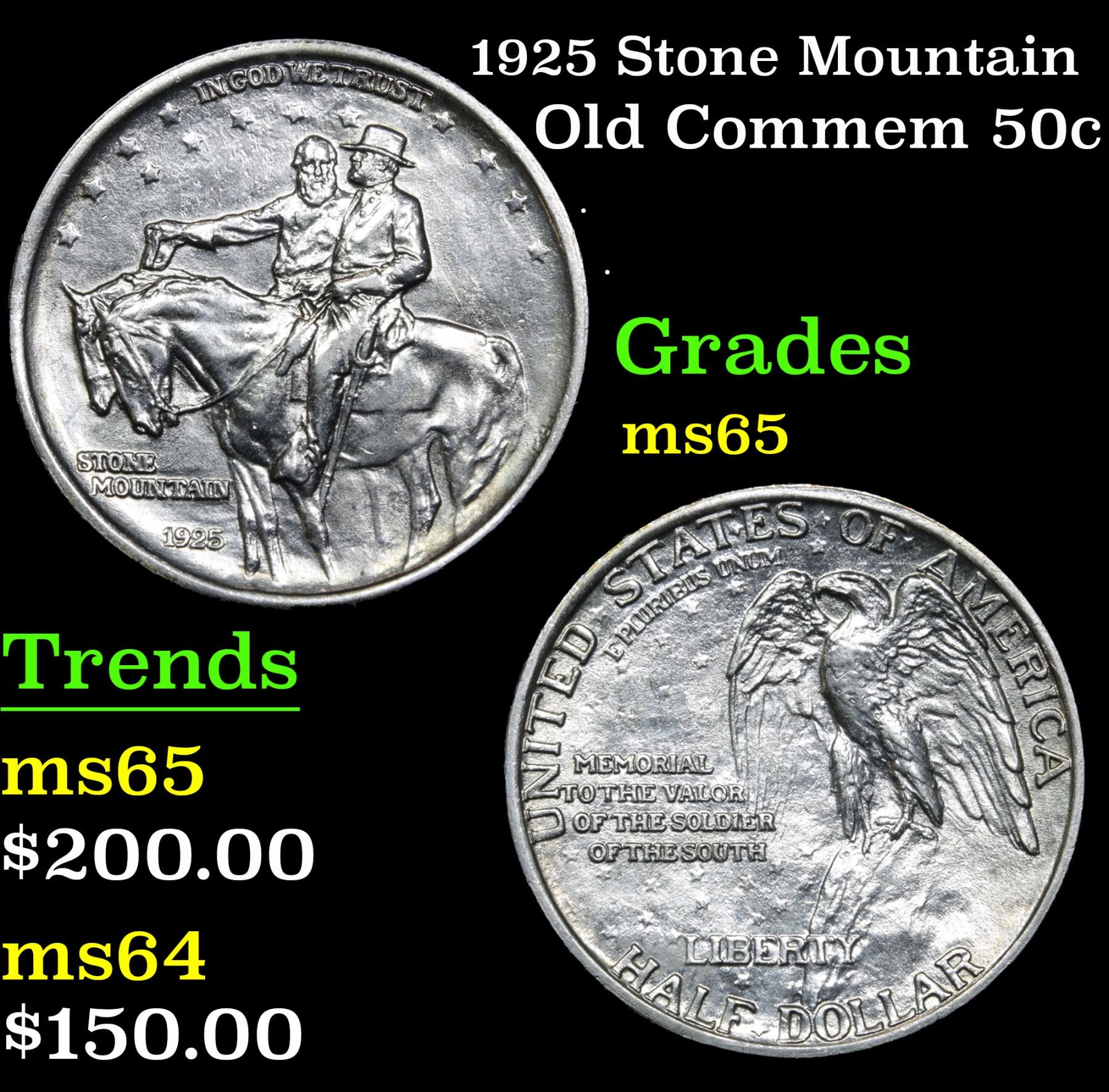 1925 Stone Mountain . . Old Commem Half Dollar 50c Grades GEM Unc. One of the most Beloved Commemoratives. A perennial favorite and one of the most popular commemoratives - the Stone Mountain never dissapoints in its desirability. It celebrates the construction of a monument carved into The Stone Mountain outside of Atlanta, except the Monument was not completed till 1970 some 45 years after is minting. The original designer of the monument was discharged after a falling out and went on to create Mount Rushmore. When Examining a Stone Mountain Commemorative examine General LeeÕs elbow and the eagleÕs breast for the first signs of wear. A Corey's Pick