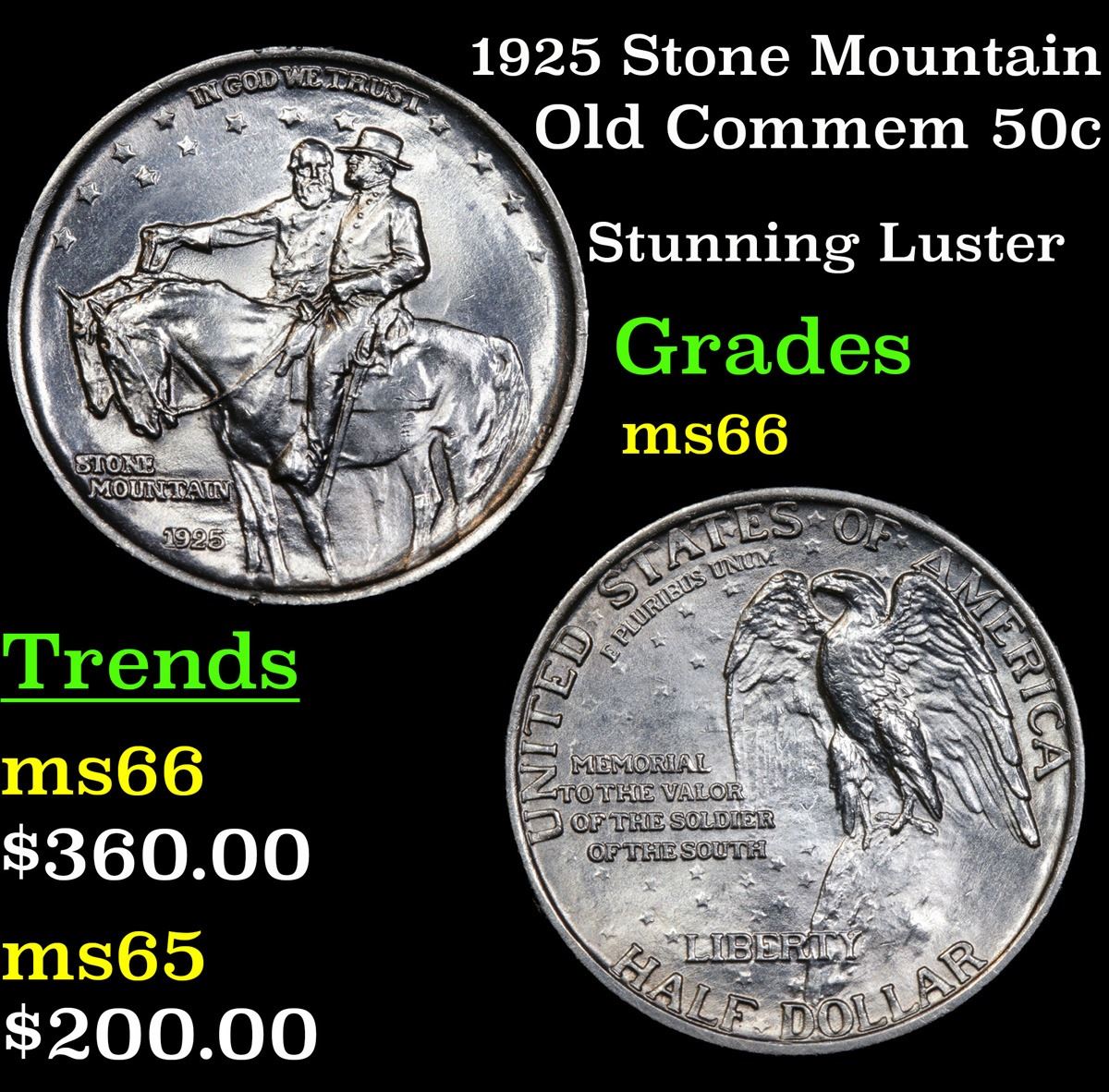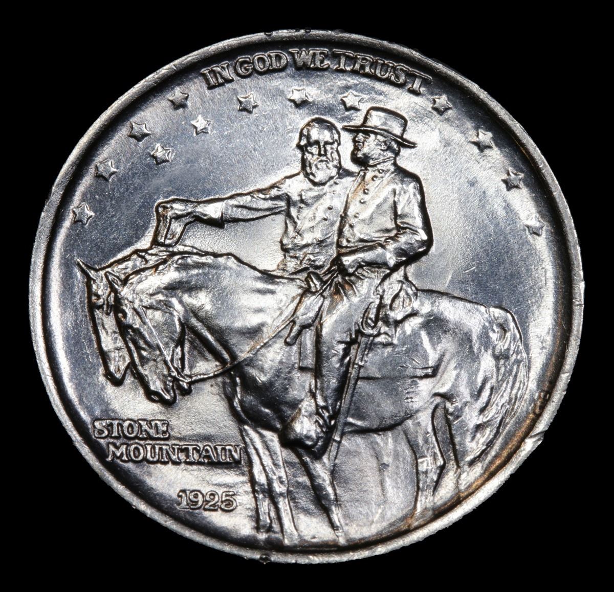 1925 Stone Mountain Stunning Luster . Old Commem Half Dollar 50c Grades GEM+ Unc. One of the most Beloved Commemoratives. A perennial favorite and one of the most popular commemoratives - the Stone Mountain never dissapoints in its desirability. It celebrates the construction of a monument carved into The Stone Mountain outside of Atlanta, except the Monument was not completed till 1970 some 45 years after is minting. The original designer of the monument was discharged after a falling out and went on to create Mount Rushmore. When Examining a Stone Mountain Commemorative examine General Lee’s elbow and the eagle’s breast for the first signs of wear.