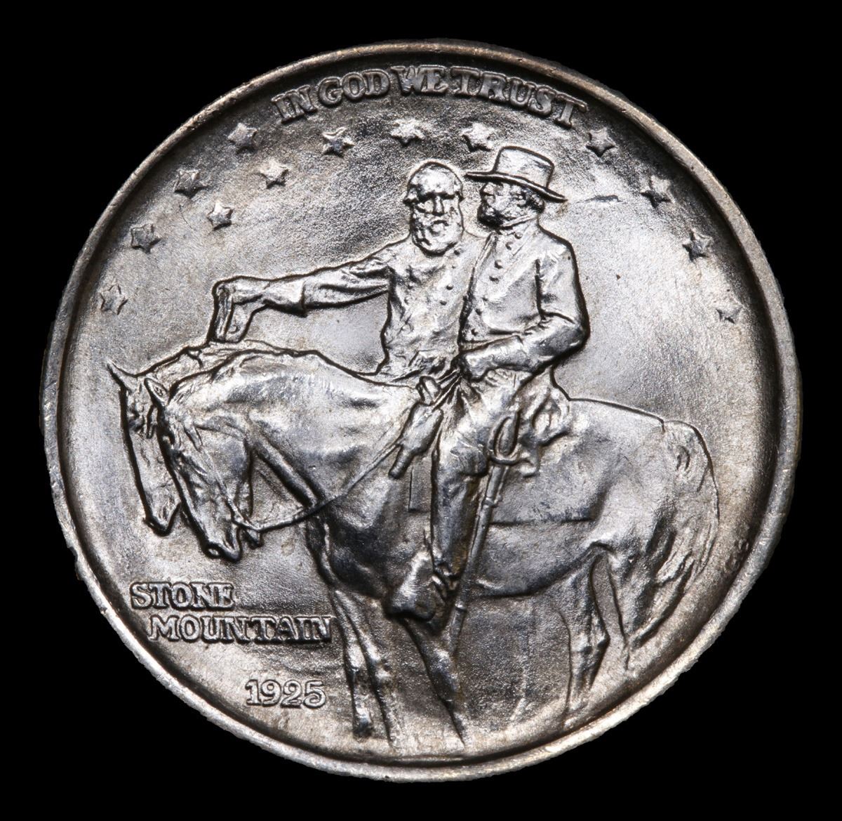 1925 Stone Mountain Old Commem Half Dollar 50c Grades GEM+ Unc. One of the most Beloved Commemoratives. A perennial favorite and one of the most popular commemoratives - the Stone Mountain never dissapoints in its desirability. It celebrates the construction of a monument carved into The Stone Mountain outside of Atlanta, except the Monument was not completed till 1970 some 45 years after is minting. The original designer of the monument was discharged after a falling out and went on to create Mount Rushmore. When Examining a Stone Mountain Commemorative examine General Lee�s elbow and the eagle�s breast for the first signs of wear.