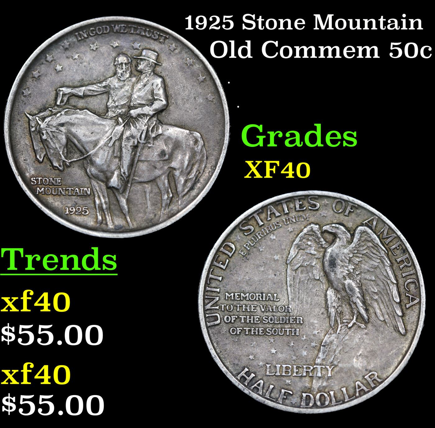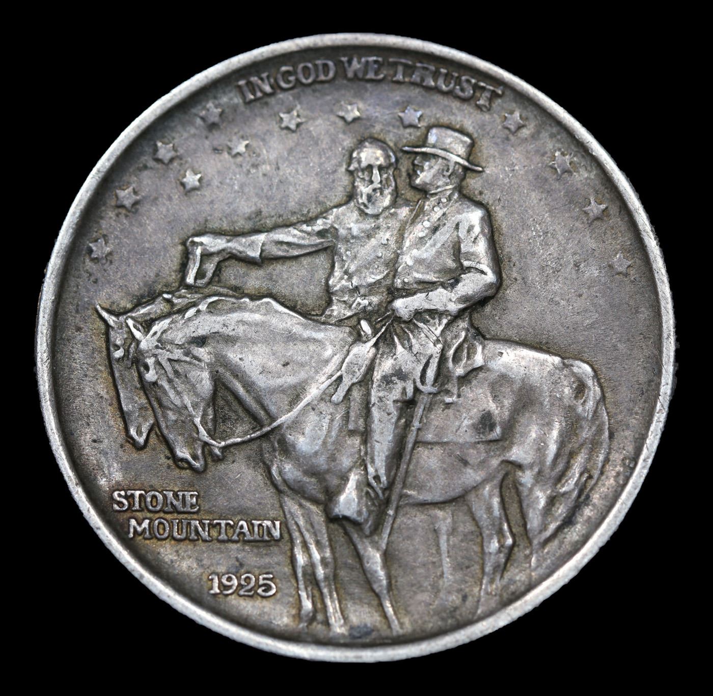 1925 Stone Mountain Old Commem Half Dollar 50c Grades xf. One of the most Beloved Commemoratives. A perennial favorite and one of the most popular commemoratives - the Stone Mountain never dissapoints in its desirability. It celebrates the construction of a monument carved into The Stone Mountain outside of Atlanta, except the Monument was not completed till 1970 some 45 years after is minting. The original designer of the monument was discharged after a falling out and went on to create Mount Rushmore. When Examining a Stone Mountain Commemorative examine General Lee’s elbow and the eagle’s breast for the first signs of wear.