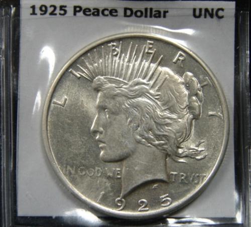 1925 U.S. PEACE SILVER DOLLAR. AU.