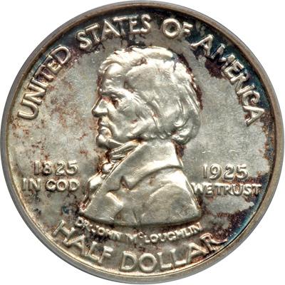 1925 Vancouver Half Dollar. PCGS graded MS-64. Lustrous with natural russet brown and steel-blue toning. Only 14,994 minted (PCGS # 9399) .