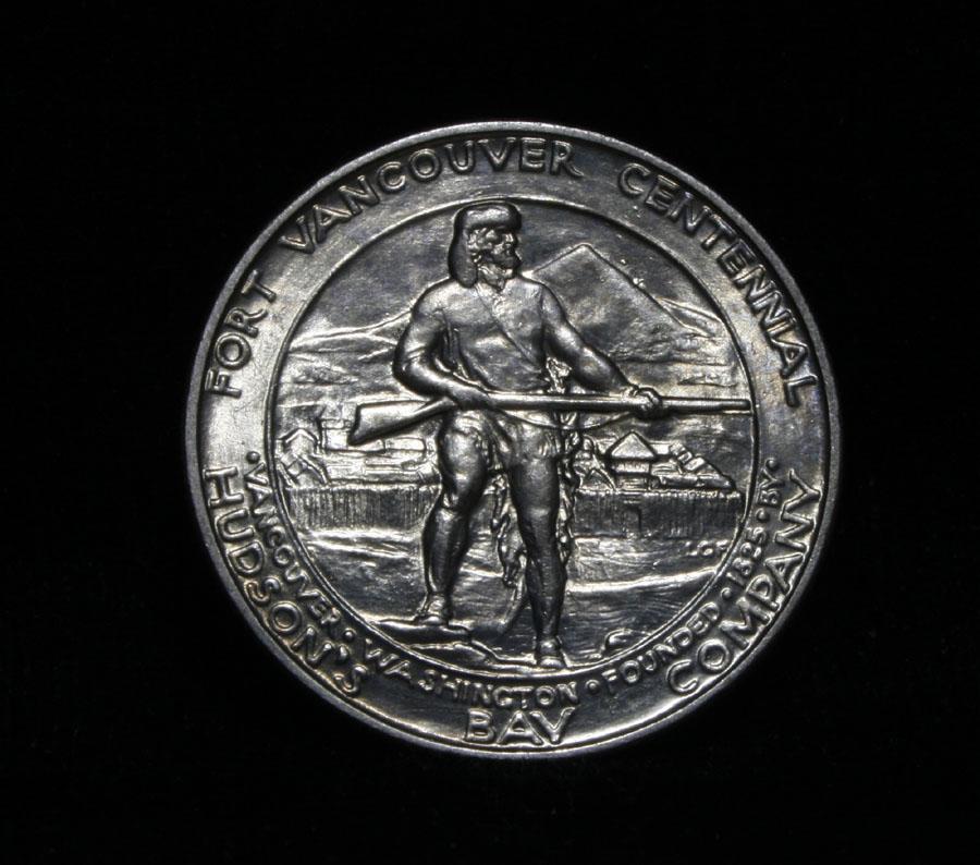 Nice example with good luster and super eye appeal. The Vancouver Centennial had a very low mintage of 14,994. Wear first appears on McLoughlin’s bust, especially on the cheekbone and hair above the ear and on the knee on the reverse. Coin World's Coin Values lists ms64 at $500 and The Wholesale Greysheet lists ms64 at $380. Estimated Value $425