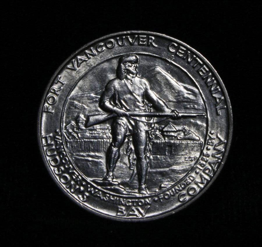 Beautiful Blast White and lustrous example. Super eye appeal. The Vancouver Centennial had a very low mintage of 14,994. Wear first appears on McLoughlin’s bust, especially on the cheekbone and hair above the ear and on the knee on the reverse. Coin World's Coin Values lists ms65 at $1000 and The Wholesale Greysheet lists ms65 at $950. Estimated Value $975