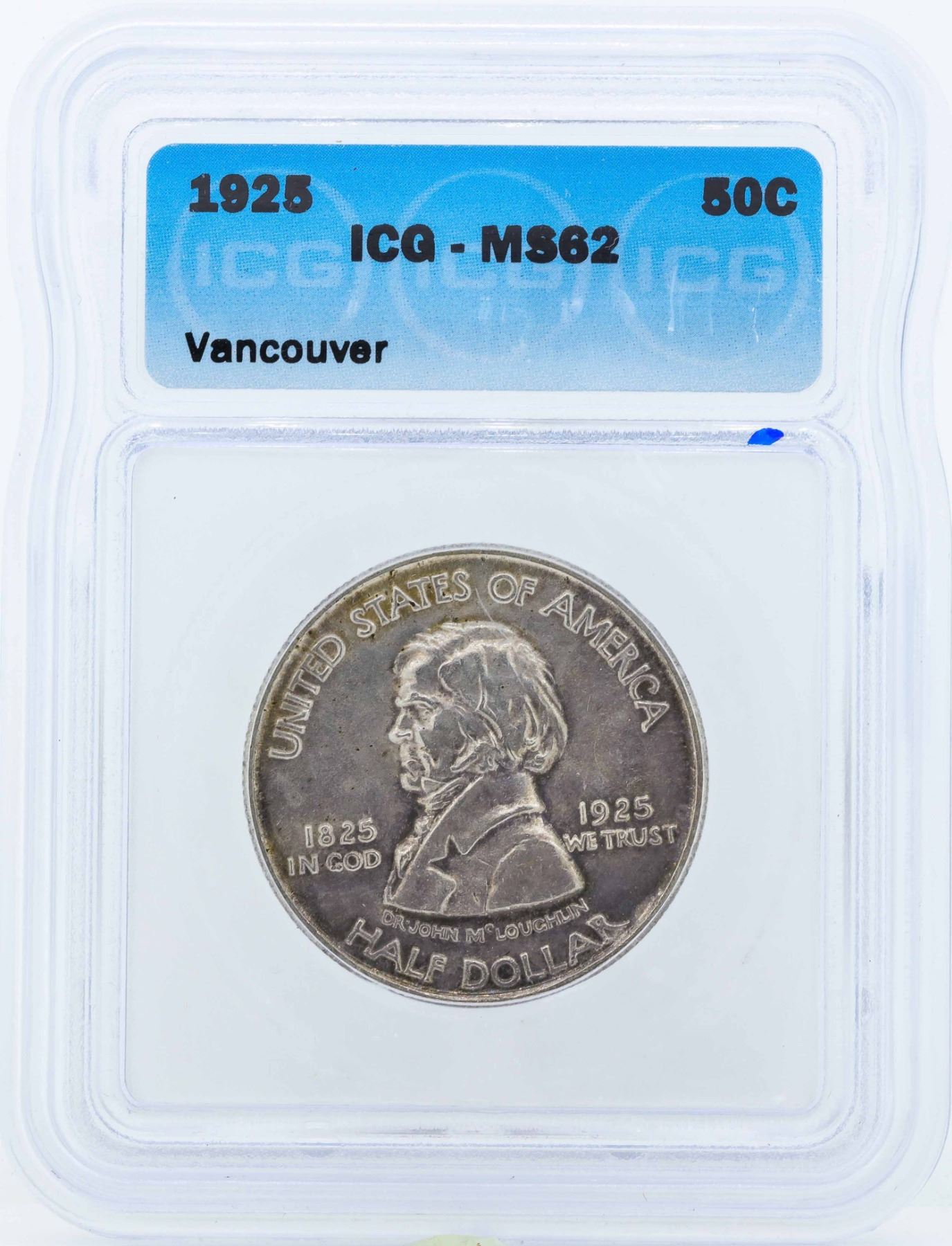 One 1925 Vancouver Commemorative Half Dollar Coin ICG MS62.