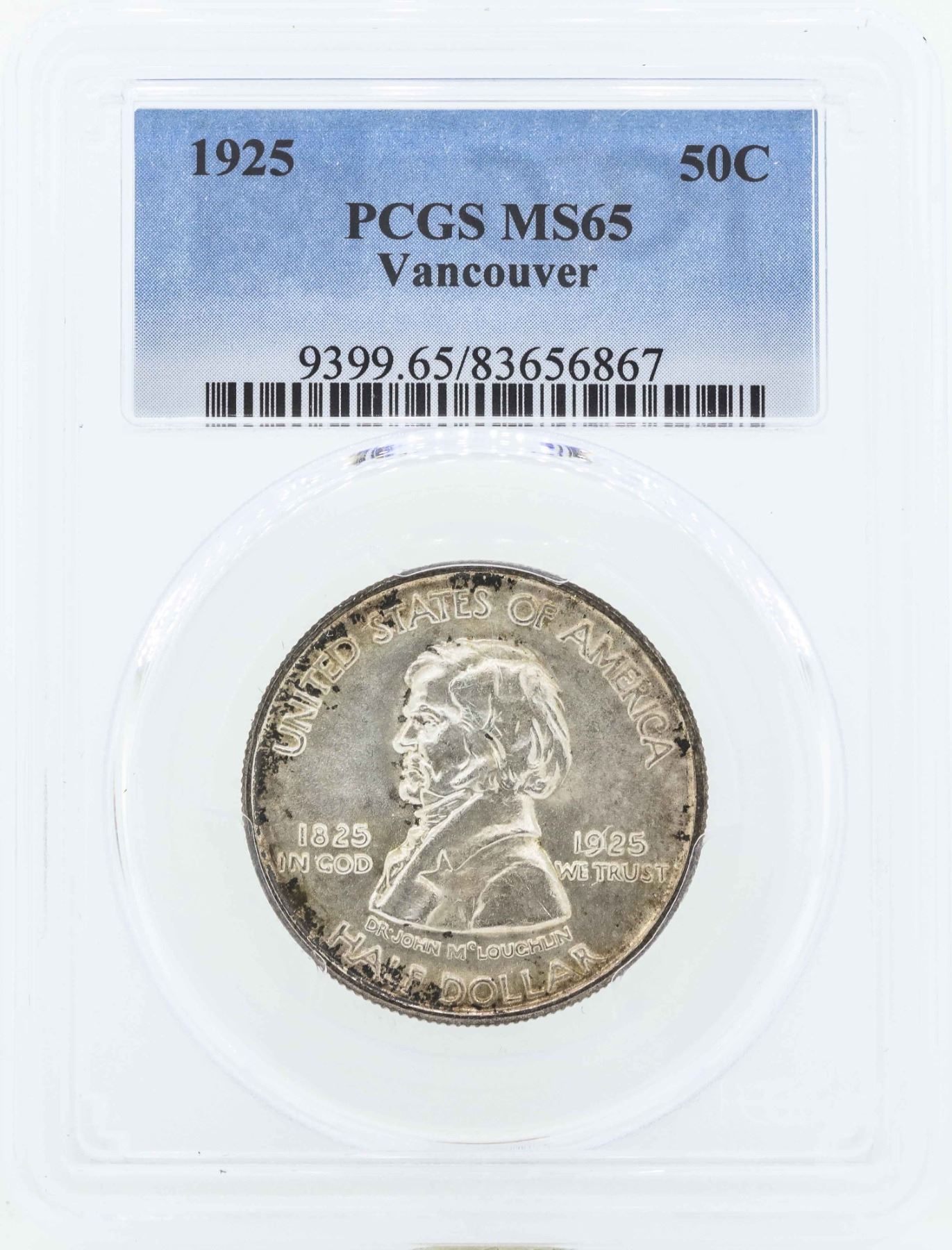 One 1925 Vancouver Commemorative Half Dollar Coin PCGS MS65.