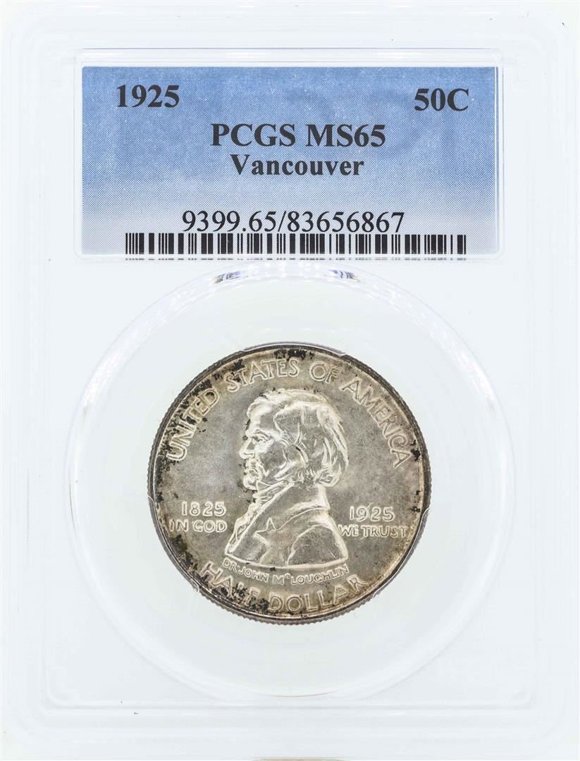 One 1925 Vancouver Commemorative Half Dollar Coin PCGS MS65. PCGS Graded.