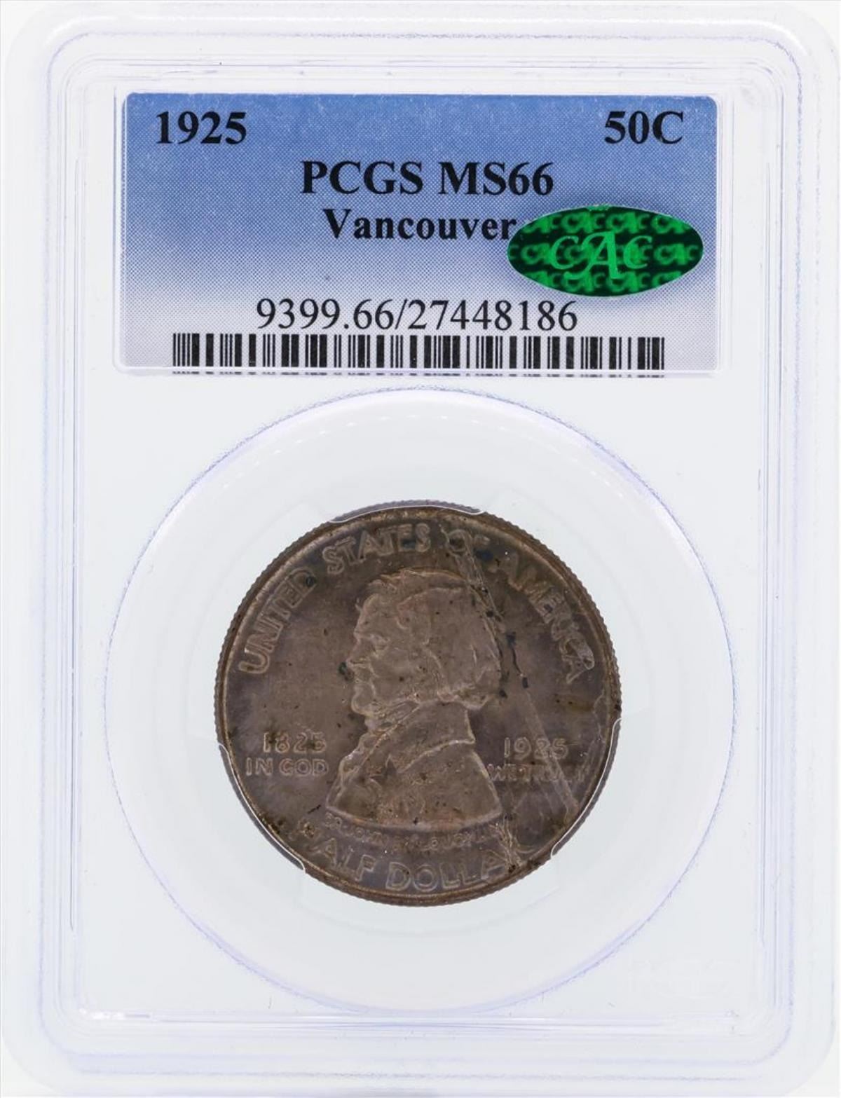 One 1925 Vancouver Commemorative Half Dollar Coin PCGS MS66 CAC. PCGS Certified.