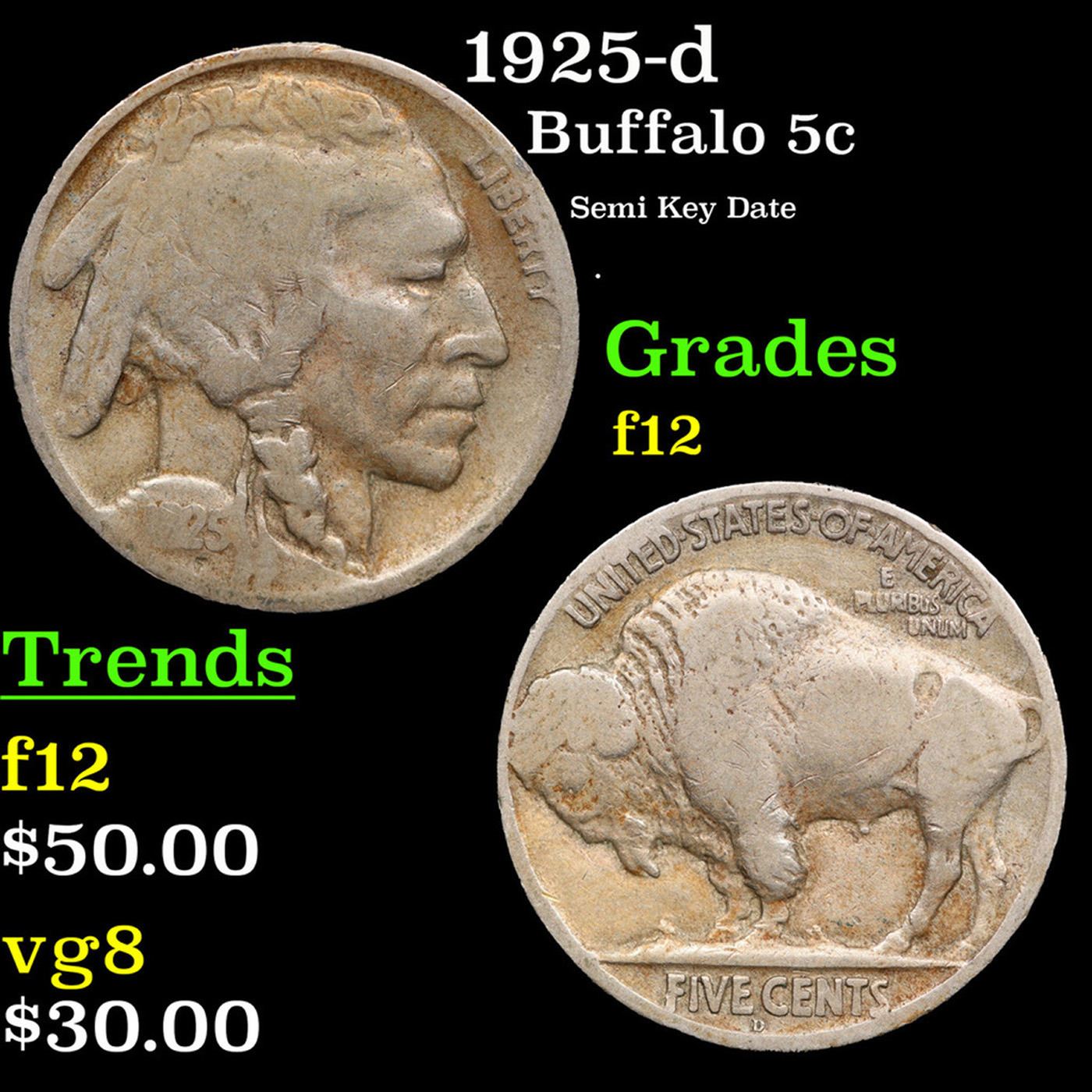 1925-d Buffalo Nickel 5c Grades f, fine