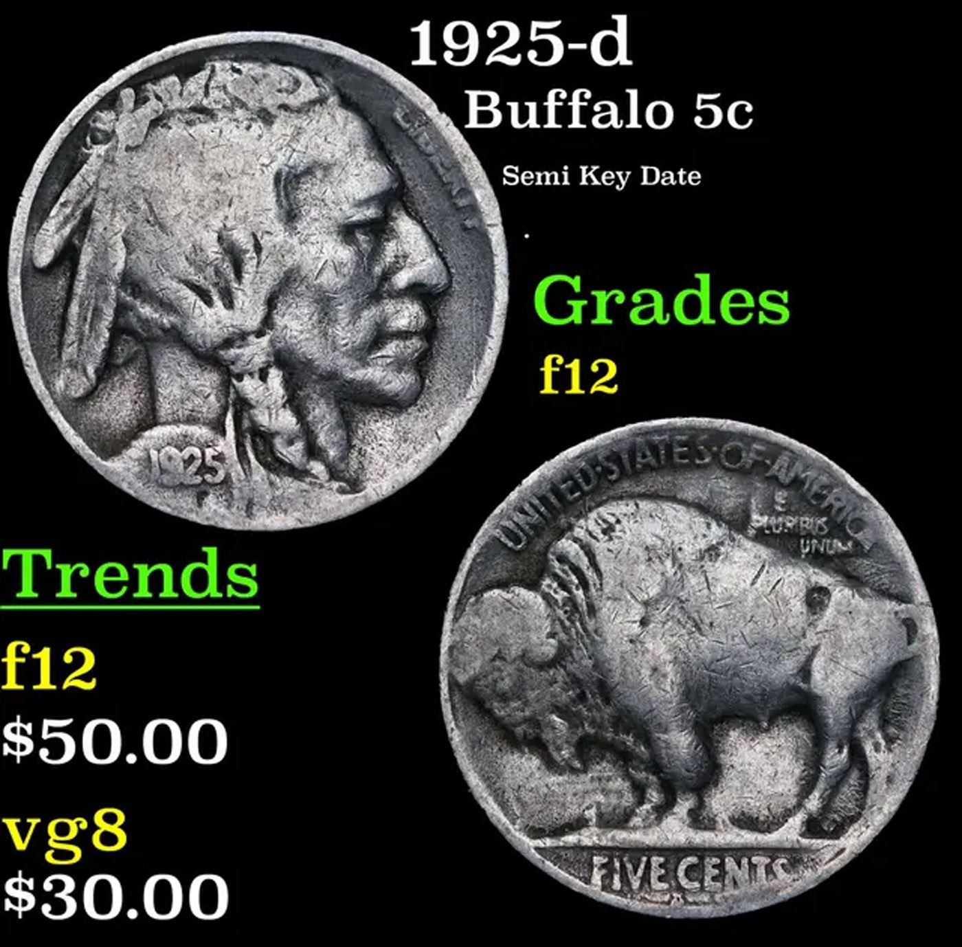1925-d Buffalo Nickel 5c Grades f, fine