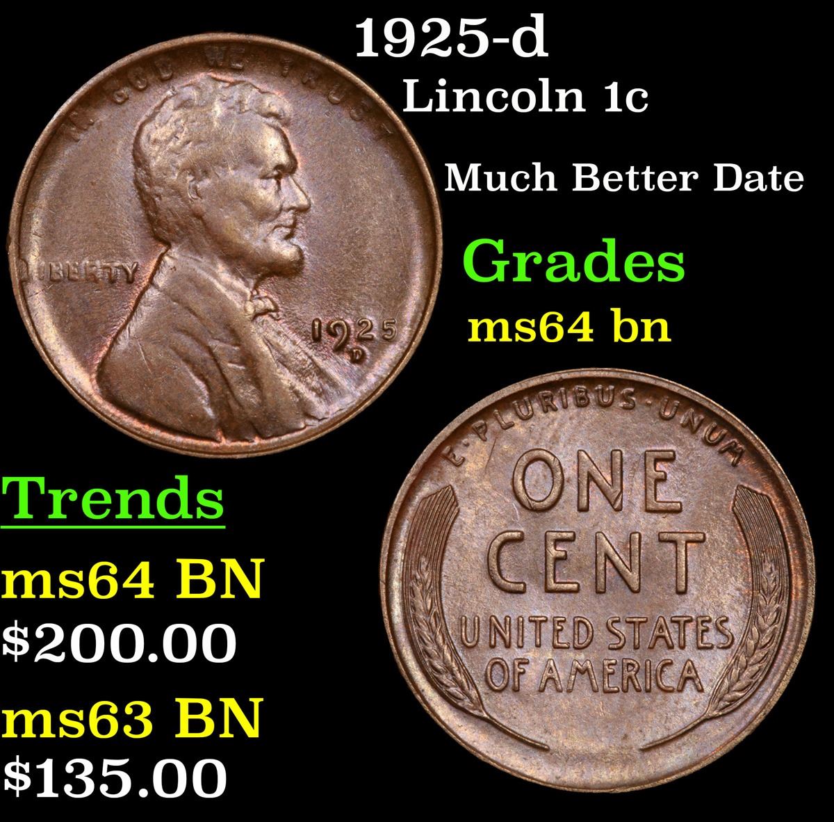 1925-d Lincoln Cent 1c Grades Choice Unc BN.