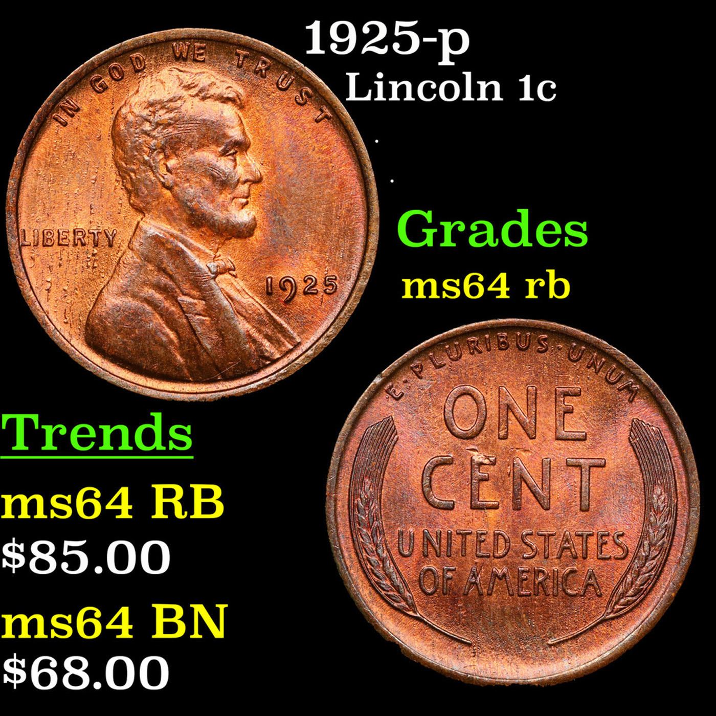 1925-p Lincoln Cent 1c Grades Choice Unc RB.