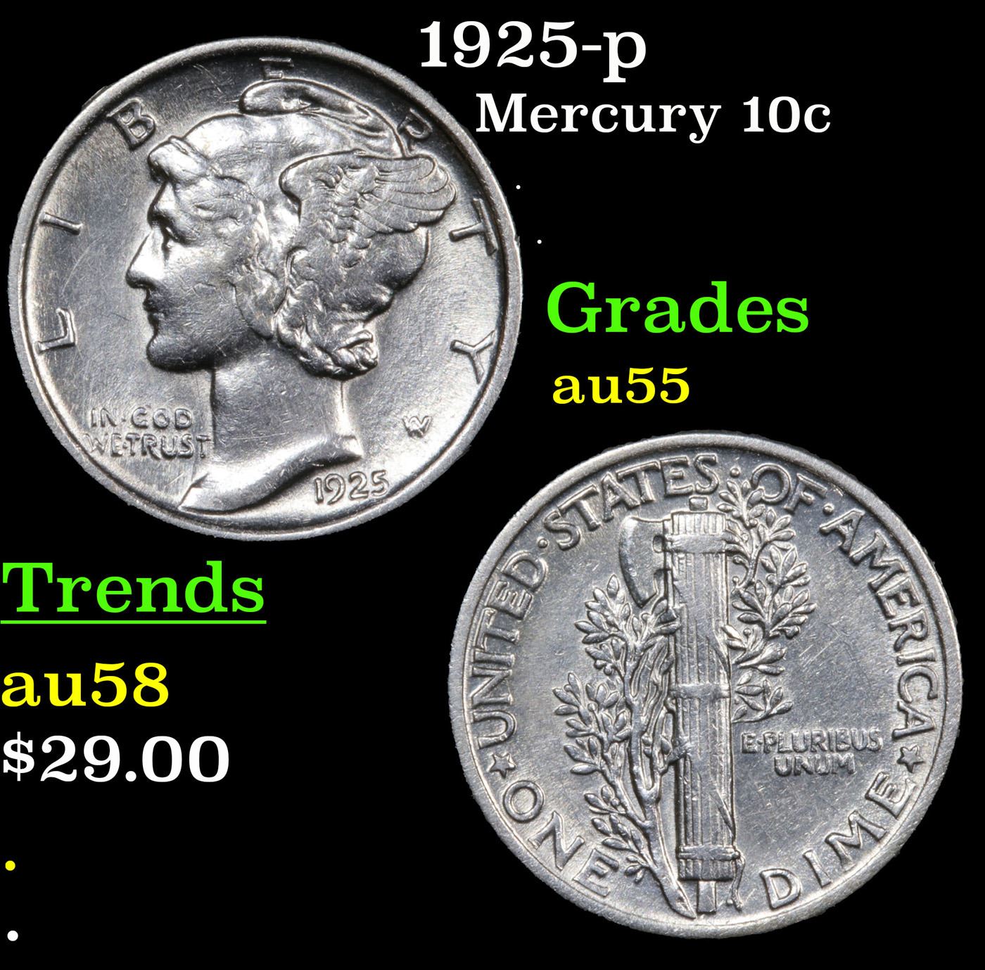 1925-p Mercury Dime 10c Grades Choice AU.