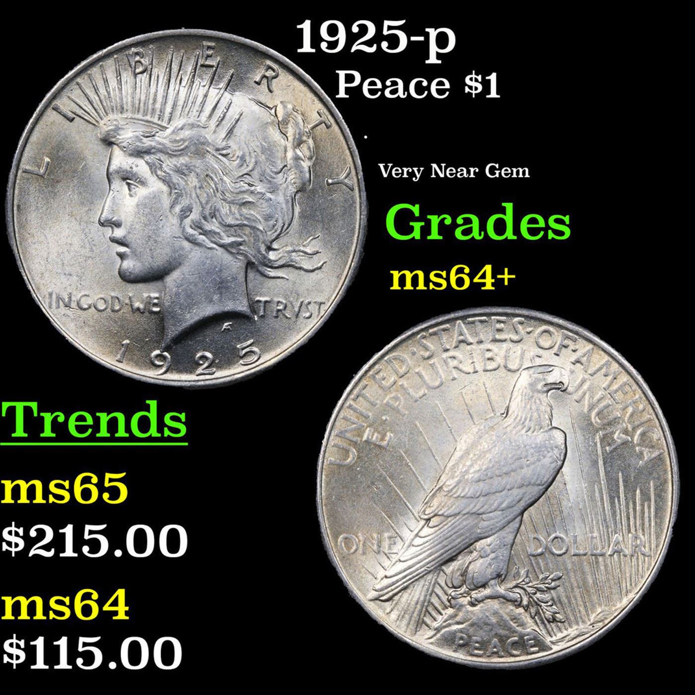 1925-p Peace Dollar $1 Graded Choice+ Unc BY USCG.