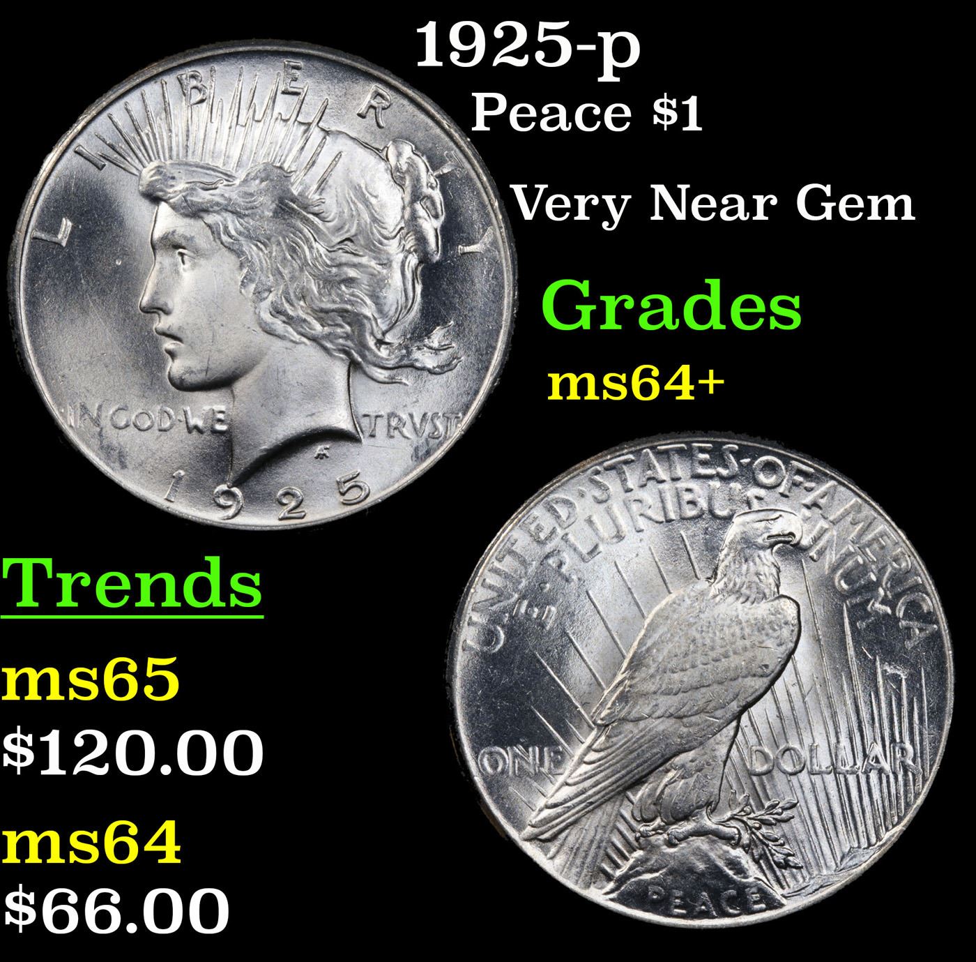 1925-p Peace Dollar $1 Grades Choice+ Unc.