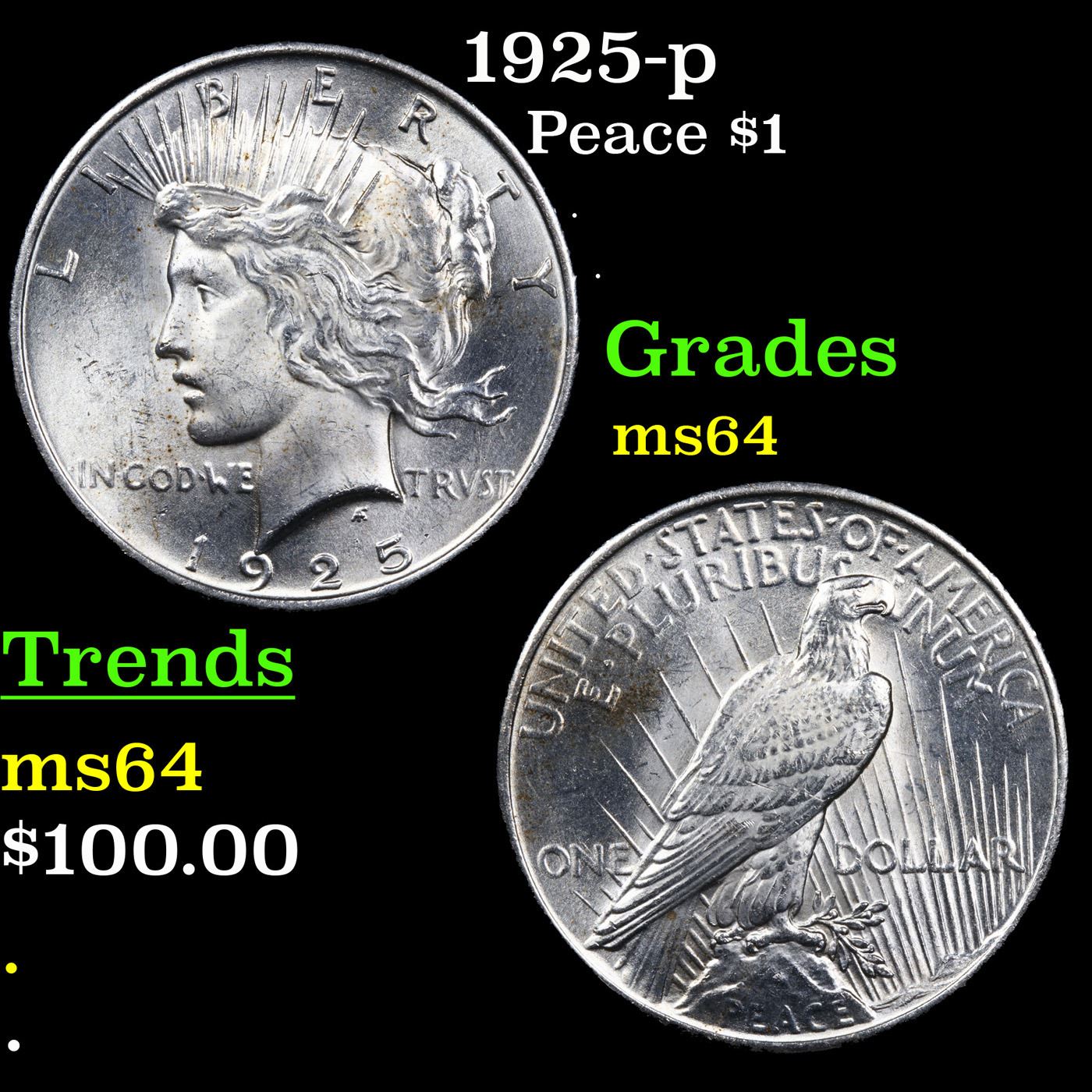 1925-p Peace $1 Grades Choice Unc