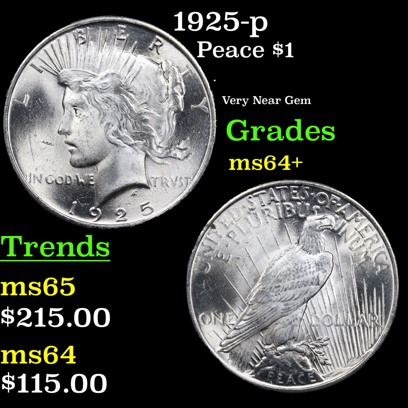 1925-p Peace Dollar $1 Grades Choice+ Unc.