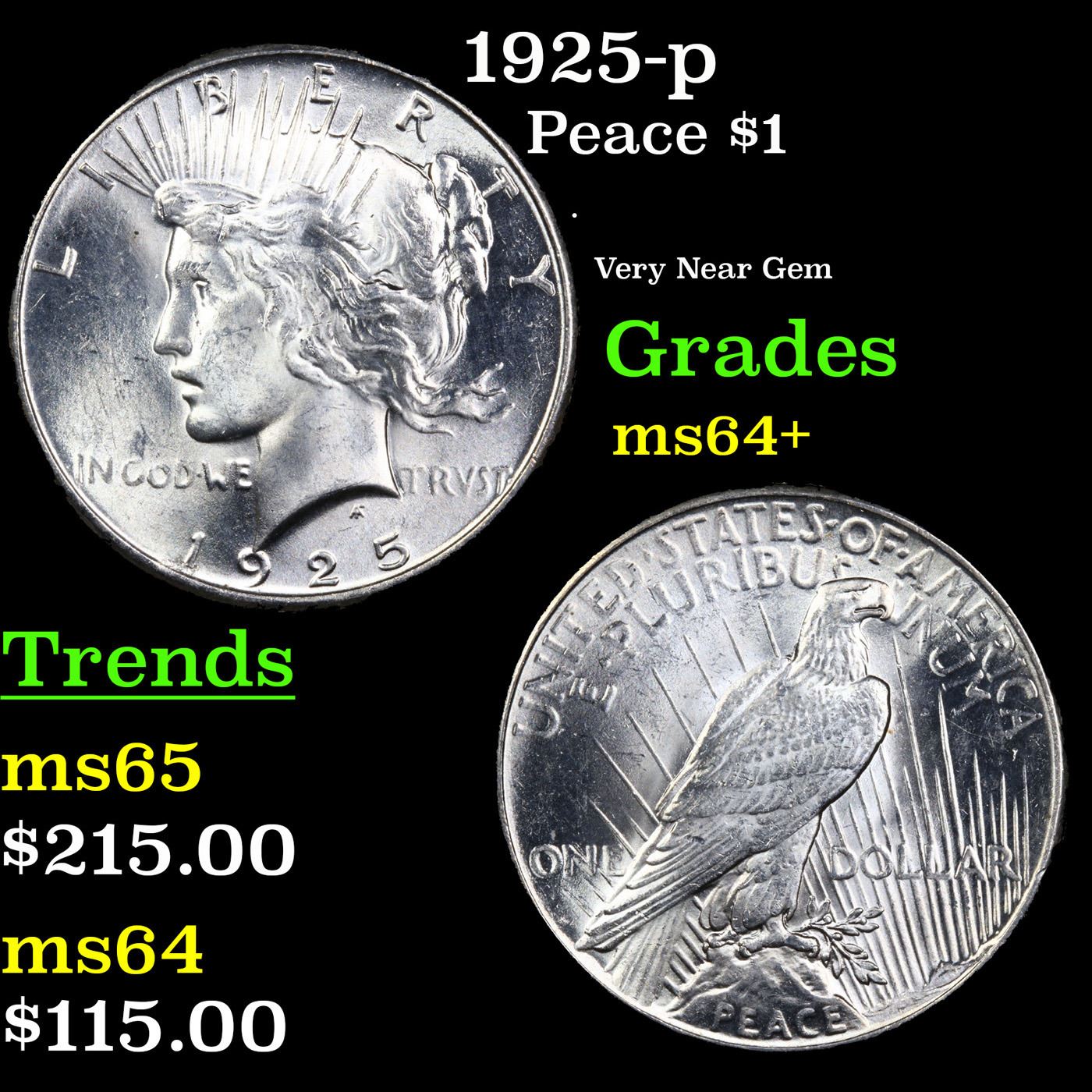 1925-p Peace Dollar $1 Grades Choice+ Unc.