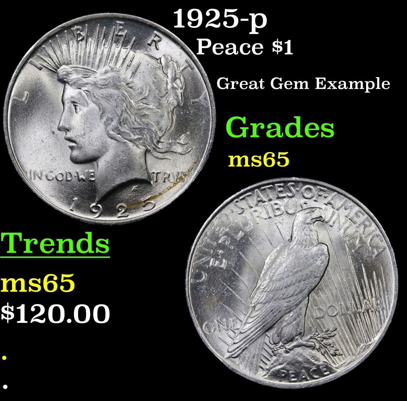 1925-p Peace Dollar $1 Grades GEM Unc.
