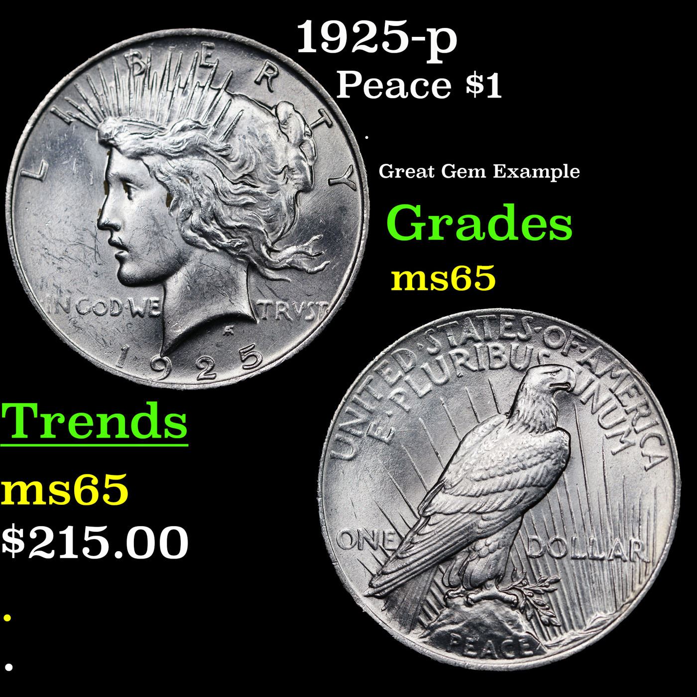 1925-p Peace Dollar $1 Grades GEM Unc.
