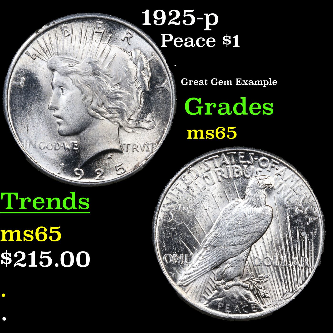 1925-p Peace Dollar $1 Grades GEM Unc.