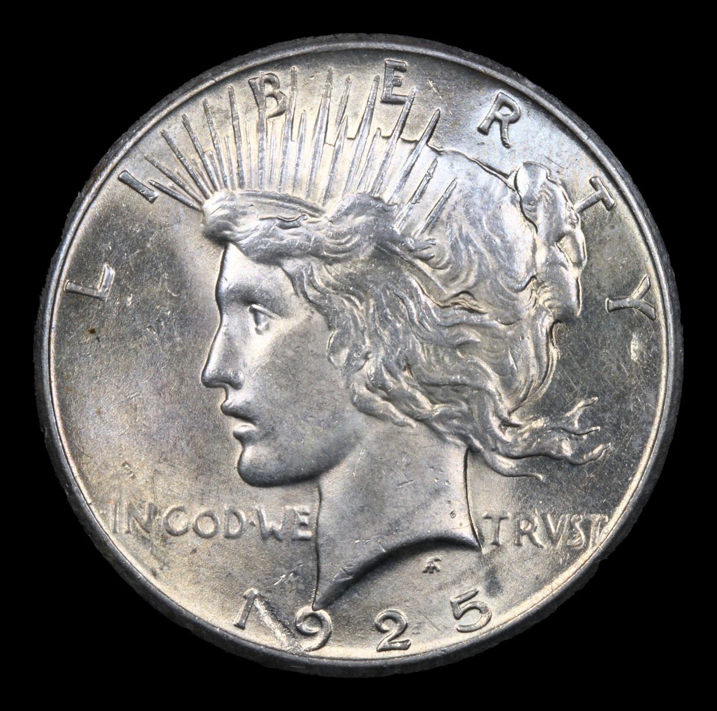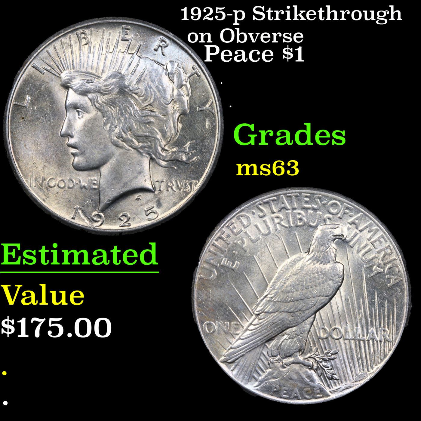 1925-p Strikethrough on Obverse Peace Dollar $1 Grades Select Unc.