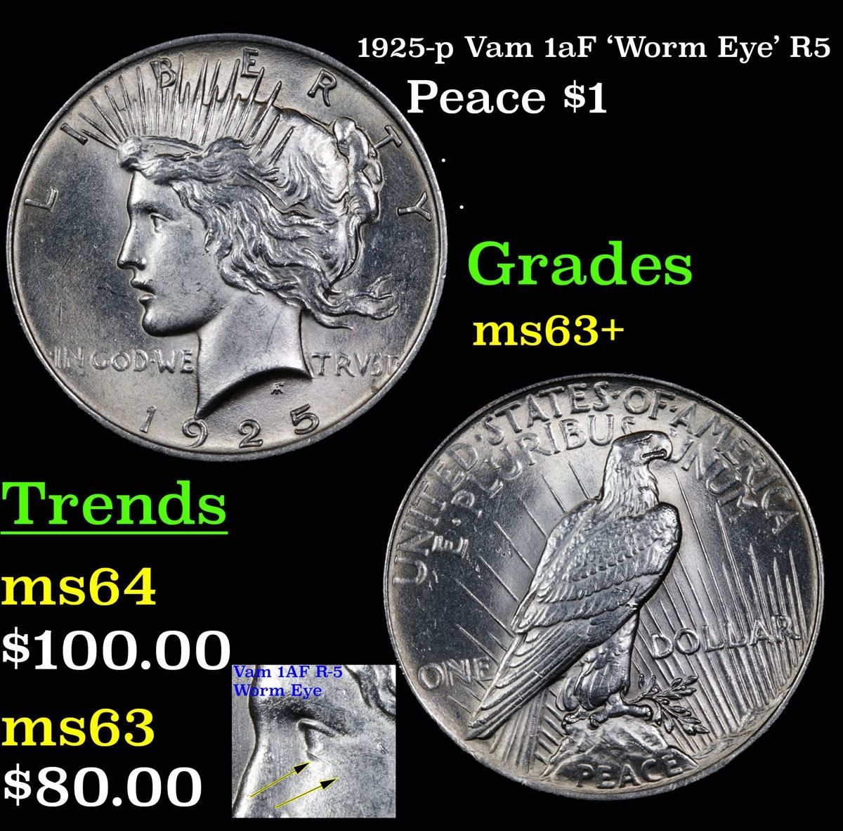 1925-p Vam 1aF 'Worm Eye' R5 Peace Dollar $1 Grades Select+ Unc.