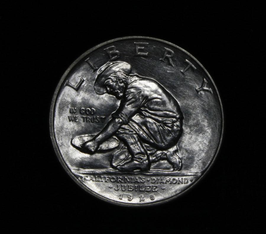A White and nice Example of a very Difficult and highly sought after Early Commemorative half Dollar. The coin has great eye appeal, but under 10x magnification some fine hairlines can be seen on the obverse, thus the net grade.   The high points of the coin are the bear's shoulder and leg and the miner's back, shoulder and shirtsleeve.  The coin was a Great success when first issued and is still sought after today The Wholesale Greysheet lists au50 at $165.  Estimated Value $200