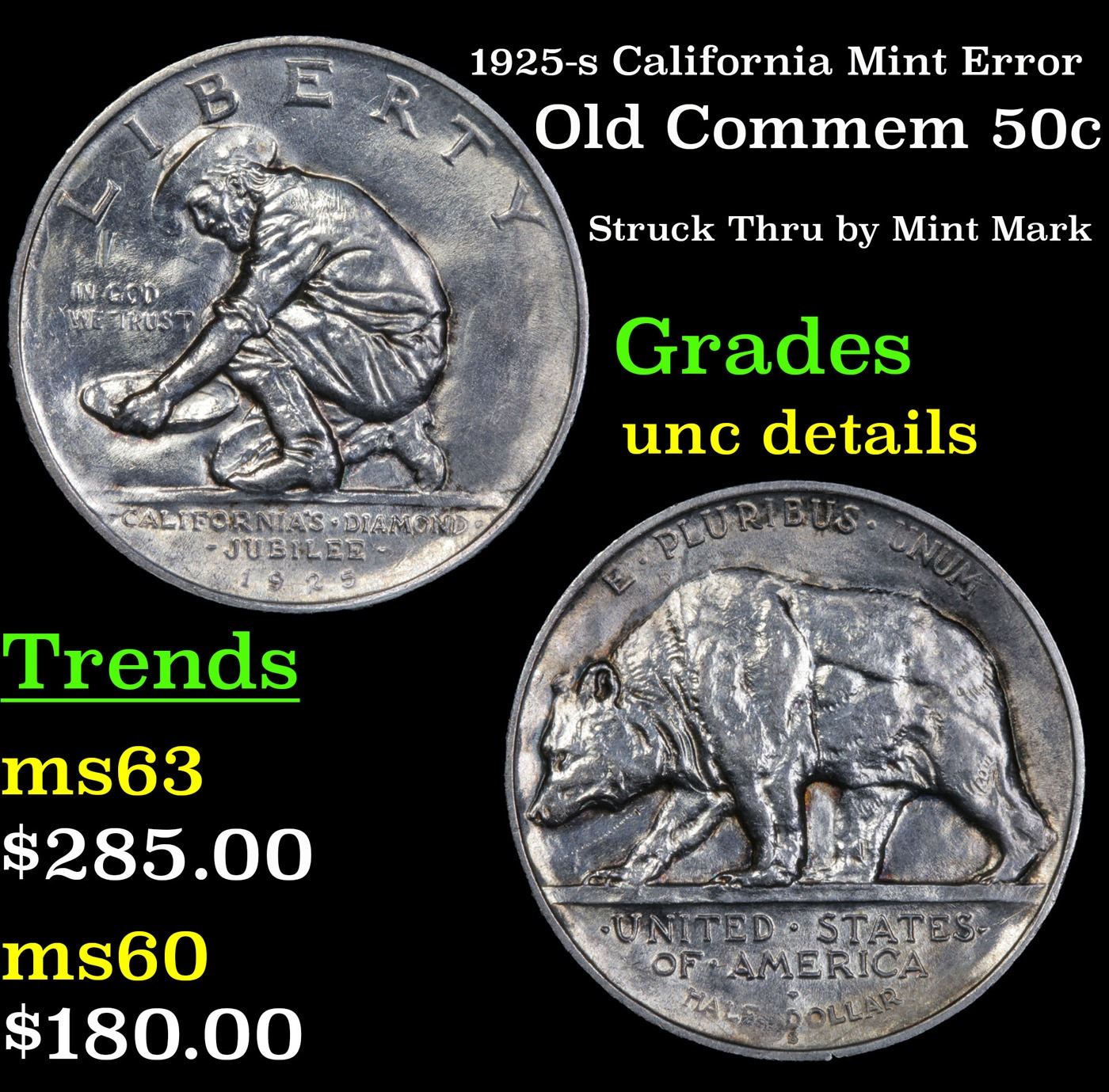 1925-s California Mint Error Old Commem Half Dollar 50c Grades Unc Details.