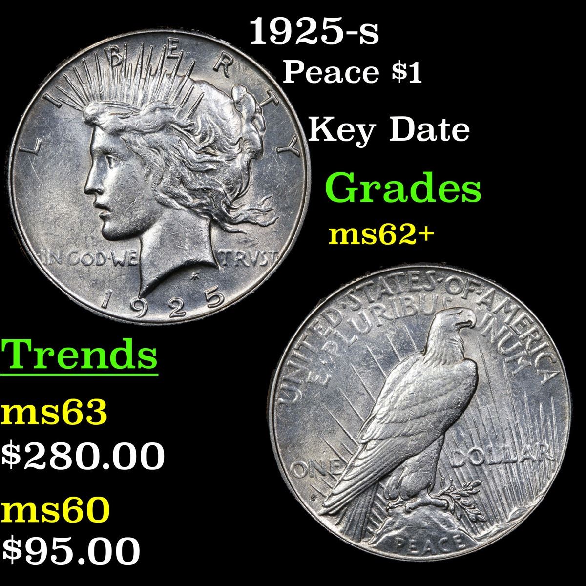 1925-s Key Date . Peace Dollar $1 Grades Select Unc.