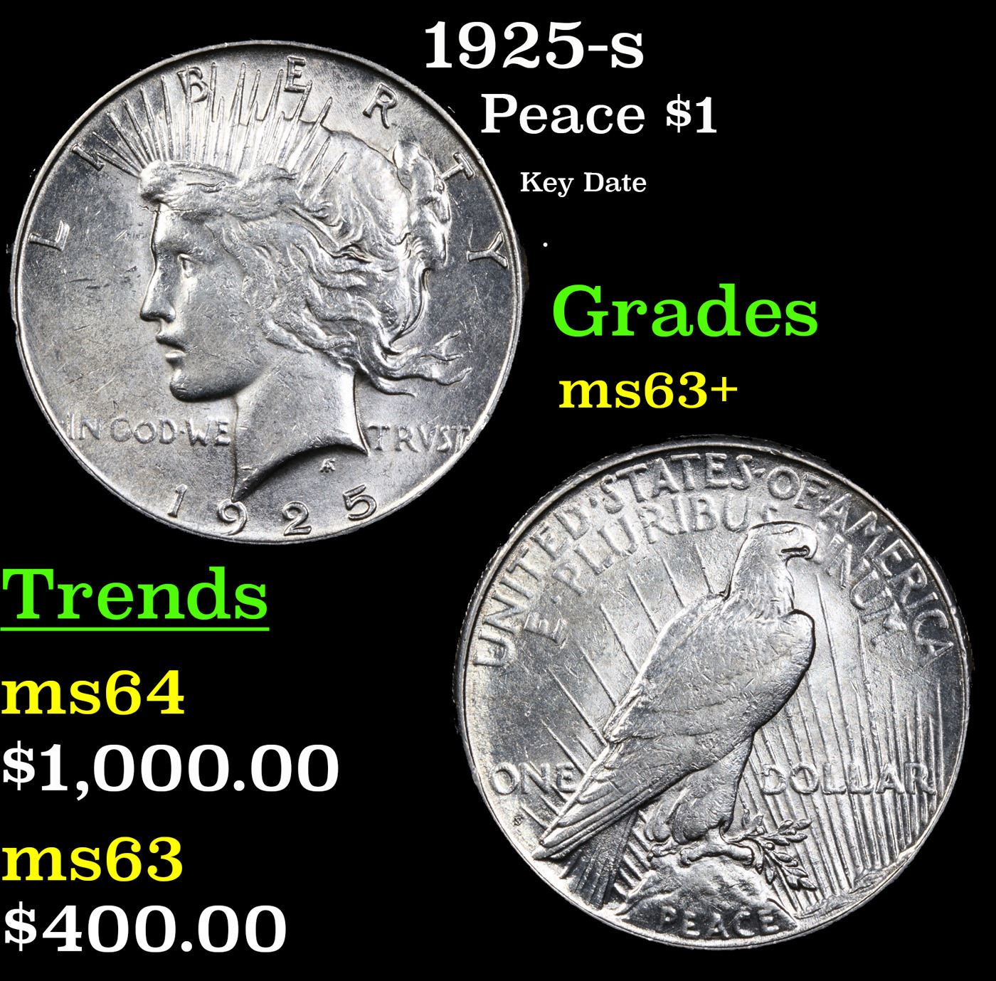 1925-s Peace Dollar $1 Grades Select+ Unc.