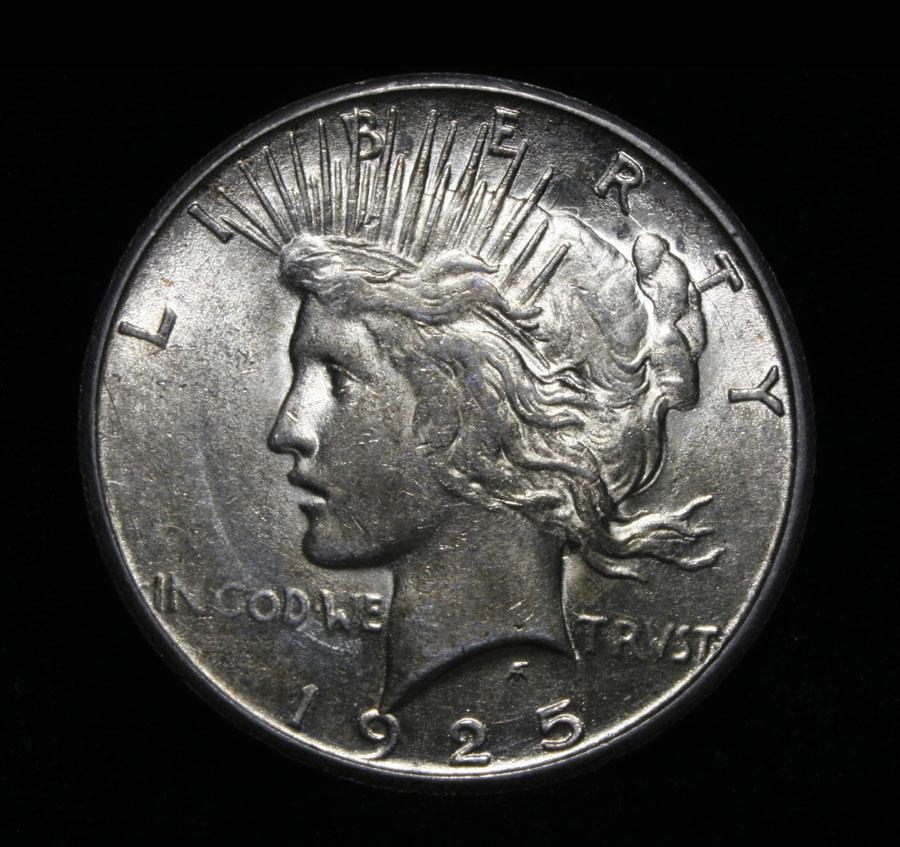 A Beautiful Example of a Harder Date Peace Dollar. Beautifully toned with a pastel rainbow on the reverse, Awesome Luster, A Great Coin. Coin World's Coin Values lists ms62 at $125. Estimated Value $90