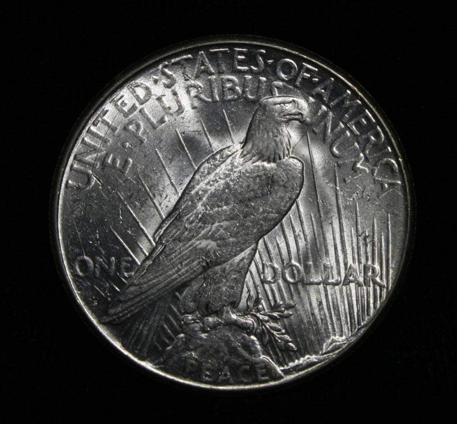 White example of a harder date Peace Dollar. Brilliant luster. Very nice example. Coin World's Coin Values lists ms63 at $225 and The Wholesale Greysheet lists ms63 at $170. Estimated Value $200