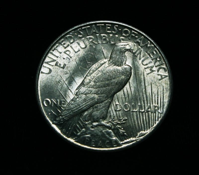 Nice example of a harder date Peace Dollar. Great luster. Very nice example. Coin World's Coin Values lists ms63 at $225 and The Wholesale Greysheet lists ms63 at $172. Estimated Value $200