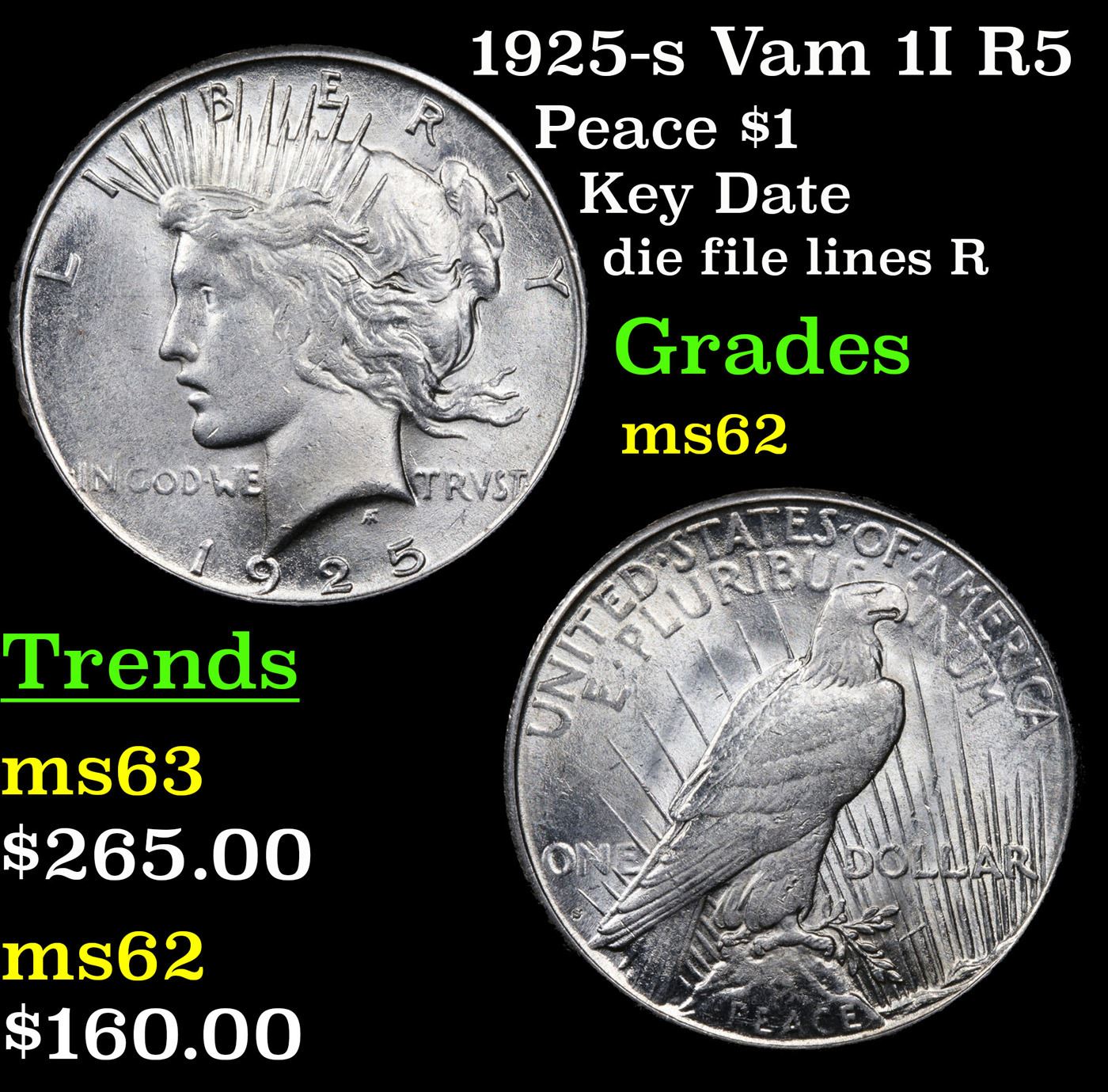 1925-s Vam 1I R5 Peace Dollar $1 Grades Select Unc.