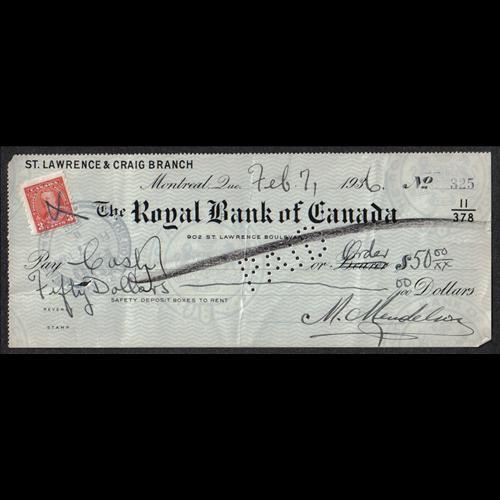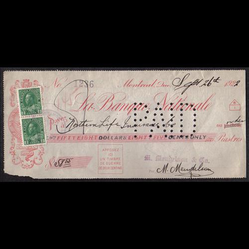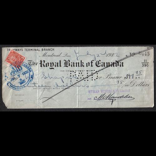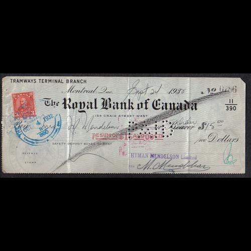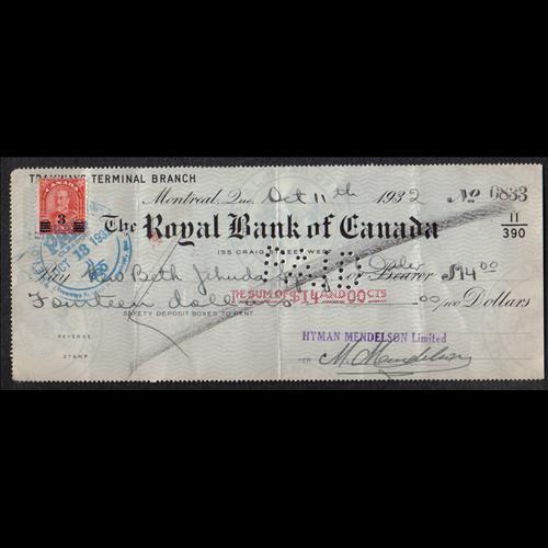 1925 to 1932 OLD BANK CHECK QTT6 -PERFIN ON ONE