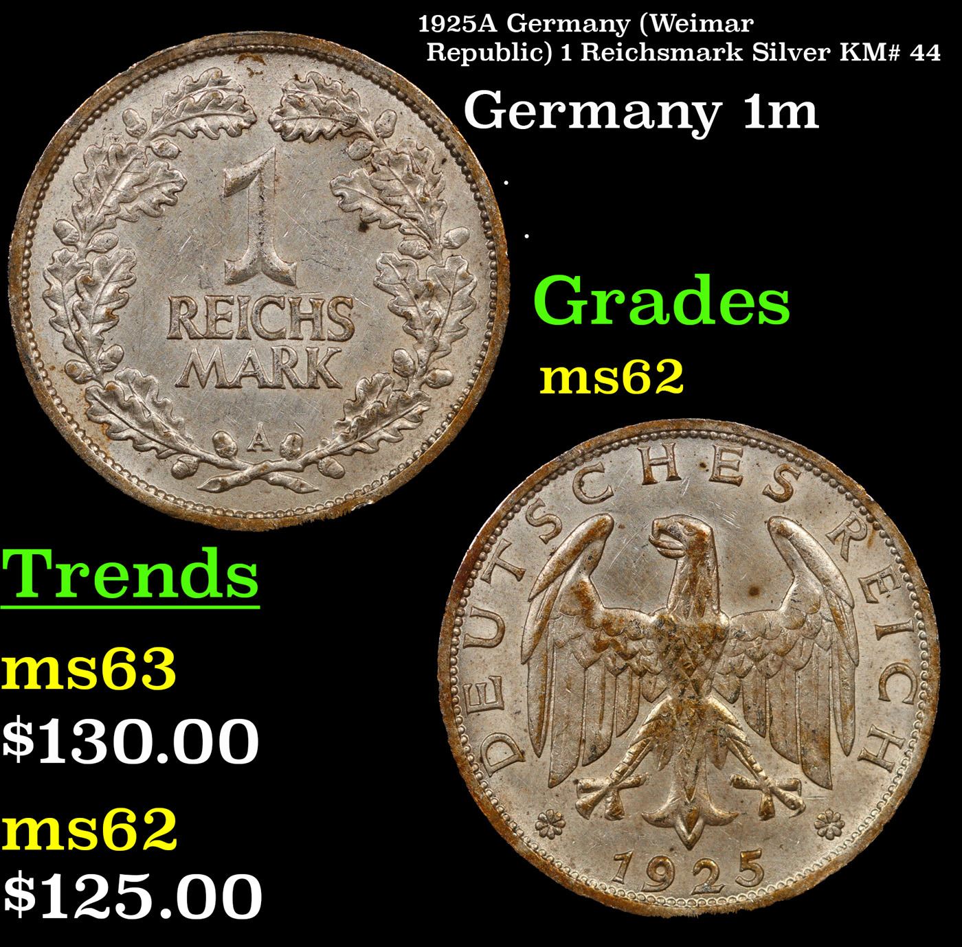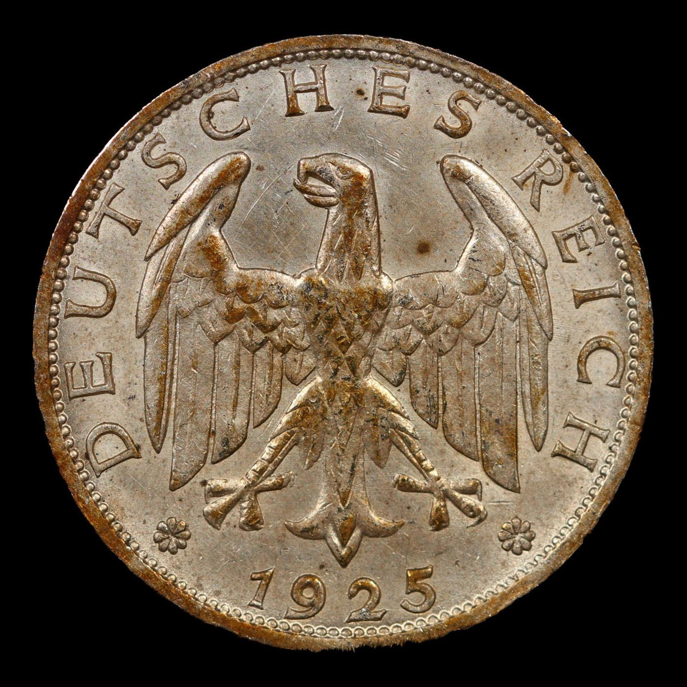 1925A Germany (Weimar Republic) 1 Reichsmark Silver KM# 44 Grades Select Unc.