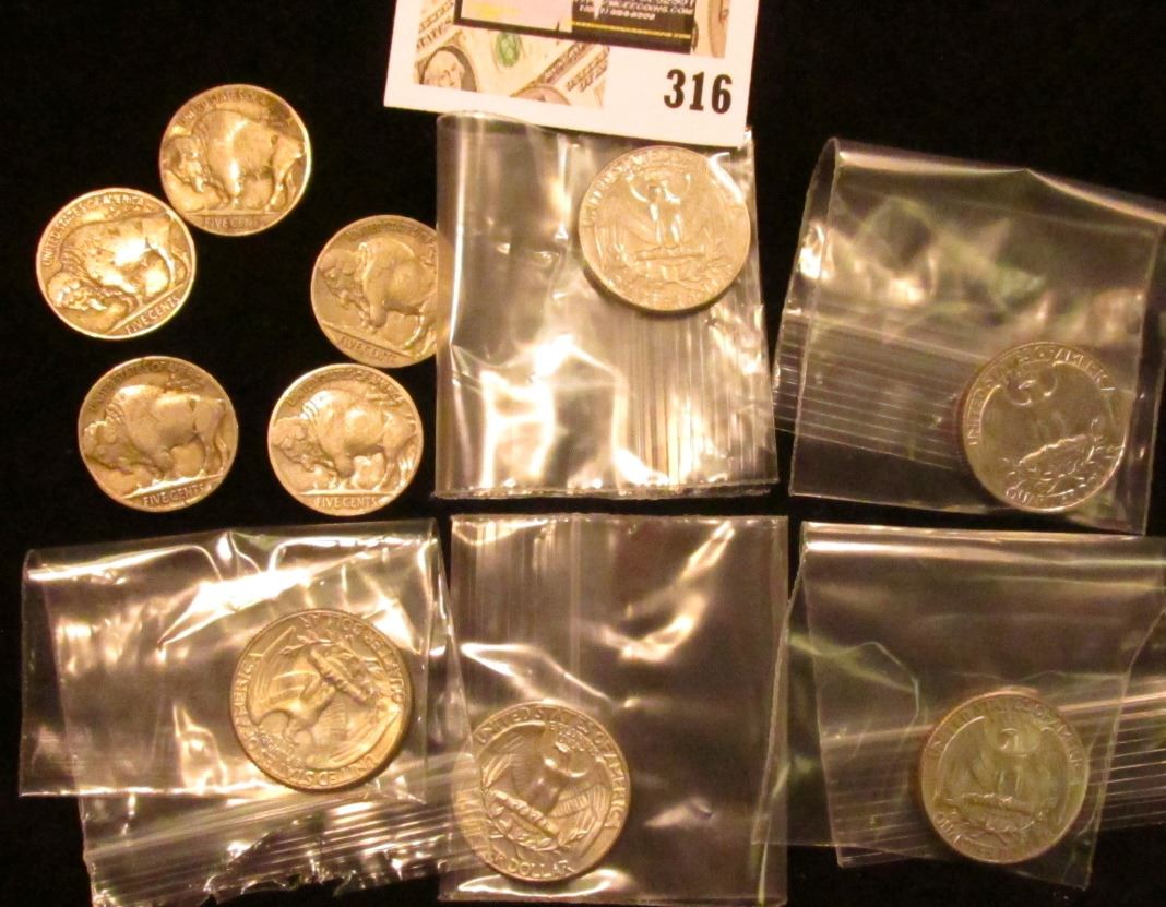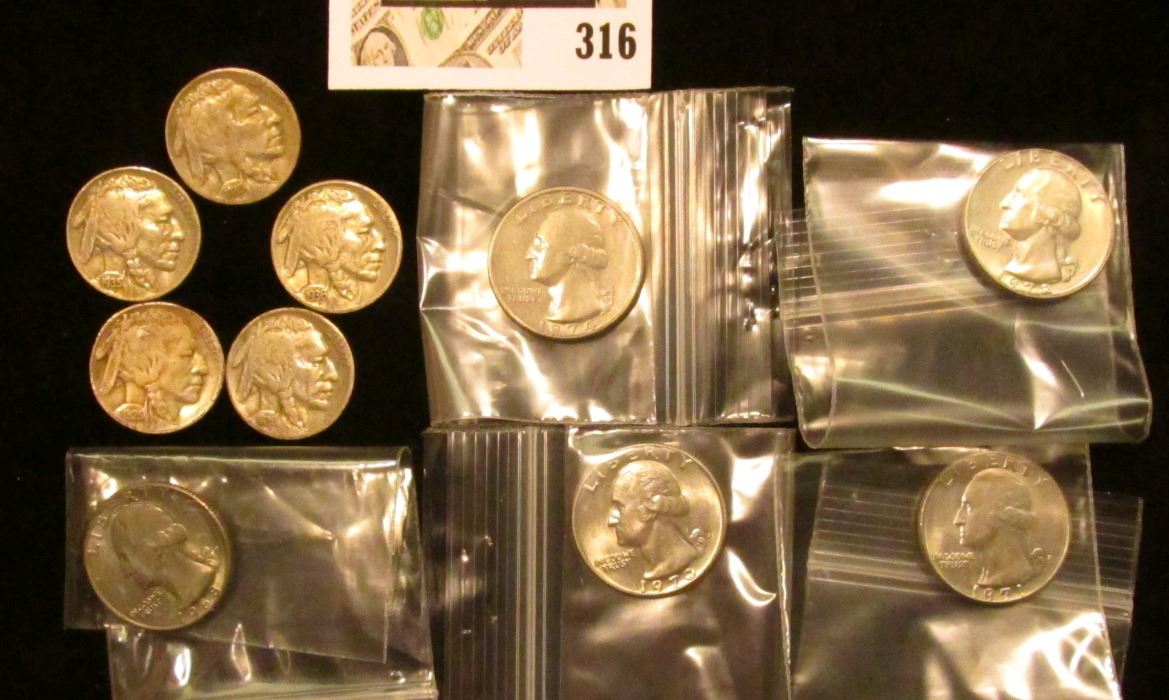 1925P, 35P, S, 36P, S Buffalo Nickels; 1968D BU, 70D BU, 71D BU, 72D BU, & 74P EF Washington Quarter
