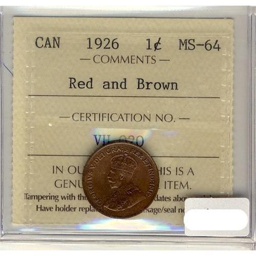 1926 1¢ ICCS MS64RB. Key date coin with superb eye appeal.