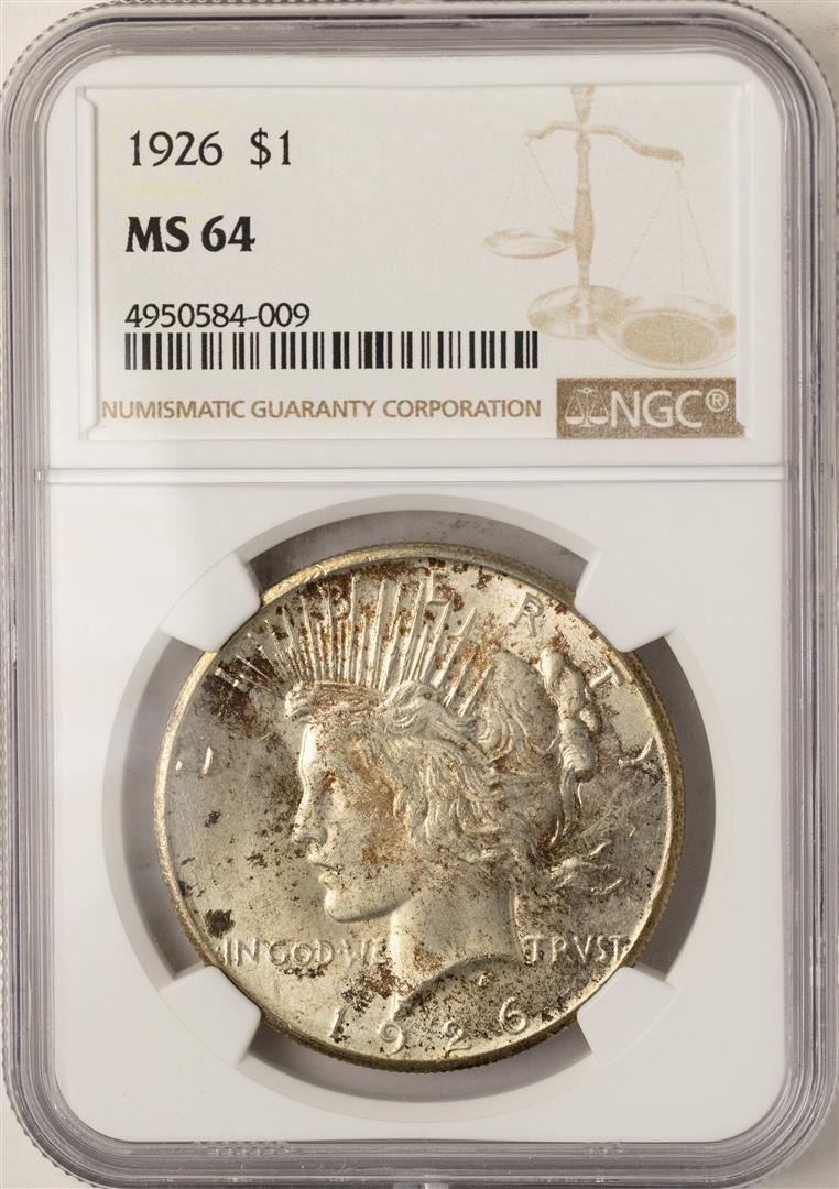 One 1926 $1 Peace Silver Dollar Coin NGC MS64. NGC Certified.