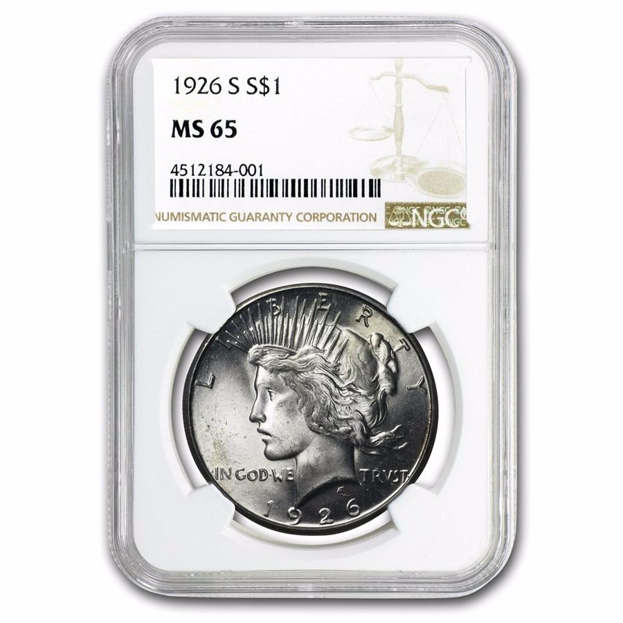 One 1926 $1 Peace Silver Dollar Coin NGC MS65.