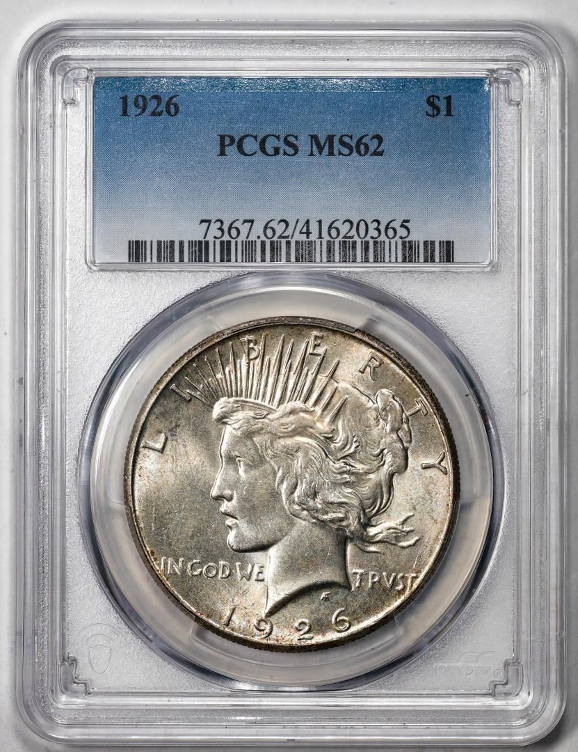 One 1926 $1 Peace Silver Dollar Coin PCGS MS62. PCGS Graded.