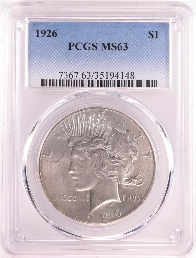 One 1926 $1 Peace Silver Dollar Coin PCGS MS63. PCGS Graded.