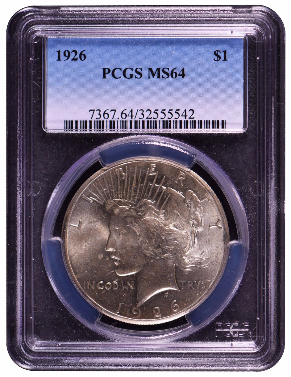 One 1926 $1 Peace Silver Dollar Coin PCGS MS64.